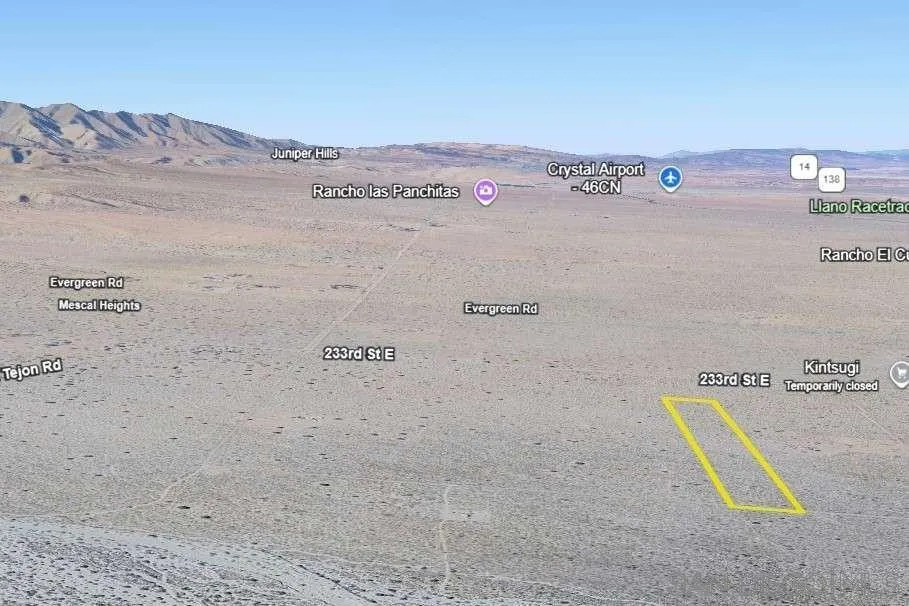 Discover the incredible opportunity of owning 10 spacious acres in Llano, Los Angeles County, CA! This property offers versatile A-2-2 Heavy Agricultural zoning, opening the door to a wide range of possibilities. With dirt road access and wide, open surroundings, you’ll enjoy a peaceful environment to create your ideal space. Located just 20 minutes from Crystalaire Country Club and 42 minutes from Victorville, you’ll have both leisure and city access within reach. Electricity in the area is off-grid, giving you the flexibility to design an energy solution that suits your needs. Secure this incredible 10-acre property today and make it yours!
