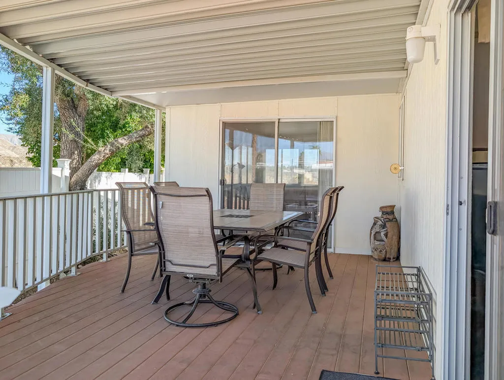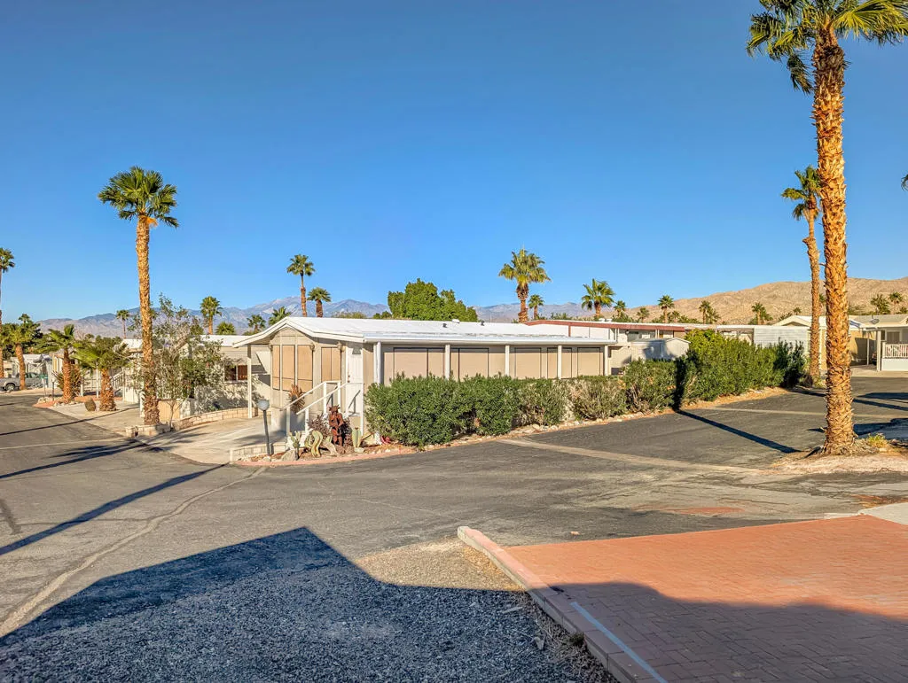 Located just steps from the Clubhouse and centrally positioned within the park, this meticulously maintained residence offers striking desert and mountain views. The property boasts an expansive outdoor entertainment area, including a spaciously covered deck with unobstructed vistas of the surrounding landscape. Encompassing approximately 600 sq. ft., the home features one bedroom and one bathroom, providing efficient yet comfortable living accommodations. Thoughtful design elements throughout enhance convenience, while the exterior presents significant opportunities for personalized landscaping. Caliente Springs is an exclusive 55+ gated community offering a comprehensive array of amenities, including a mineral hot spring-fed pool and spas, 8 pickleball courts, tennis courts, a 9-hole golf course, a library, and a vibrant social environment. Residents are encouraged to take advantage of these facilities to foster community engagement. Please note that the lot is not owned; space rent is $811.