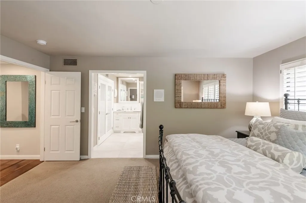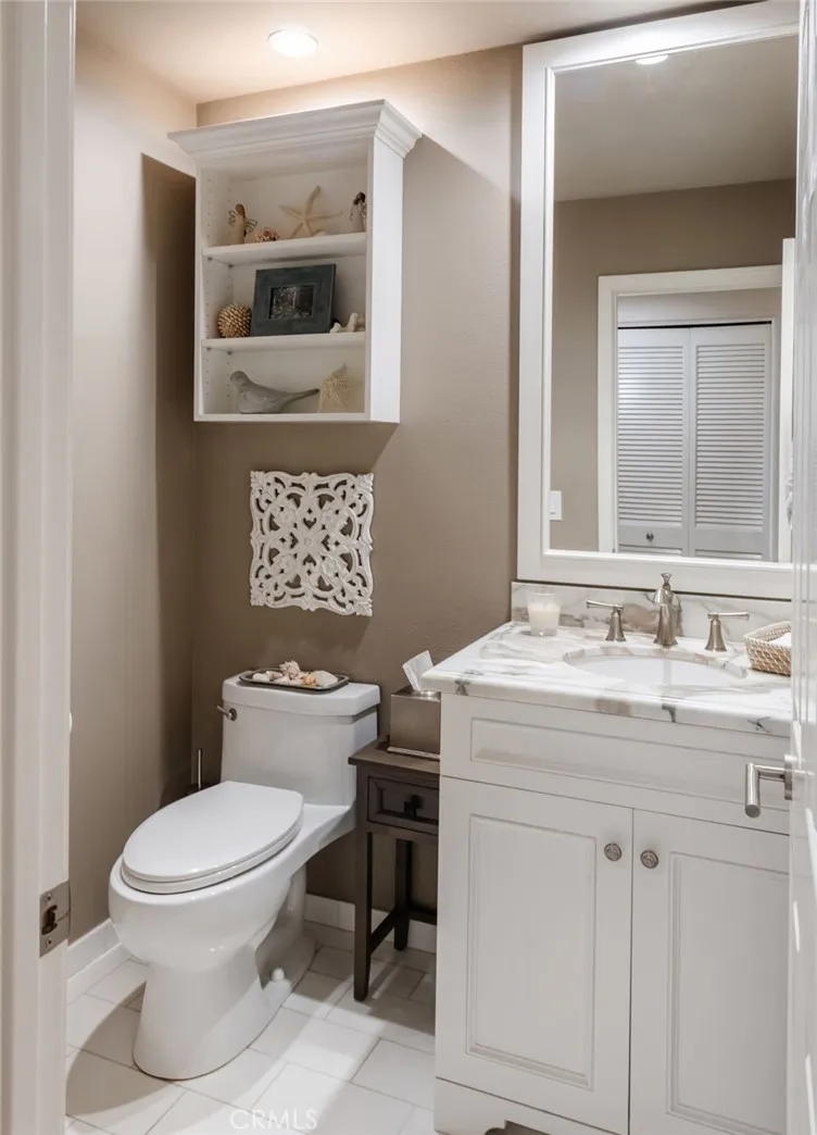 privacy. Access from the home is ideal as it flows off the living room and the kitchen. The primary suite is located on the middle level, only a few steps away. Every detail was addressed … from the cabinetry, which offers good storage, to the oversized shower and the walk-in closet with built-ins. The Calcutta marble is gorgeous! The upstairs bedrooms are spacious with good-sized closets. One bedroom has custom built-in cabinetry, including an office area with display shelving. The two additional bathrooms have also been updated with high-end finishes that are current and timeless. There are hardwood floors throughout the home with carpet in a few areas. The laundry area is centrally located inside the home. The two-car garage is oversized and also offers built-in storage. This is a terrific turnkey home!