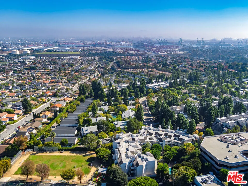 Picturesque condo that nestled at the end of a cul-de-sac in coastal San Pedro. The serene community has a private gated parking and is built around a treelined area of the city. Oak colored floors adorn the entrance to this lovely condo which are complimented by pure white colors walls that continue to rise up to impressive vaults that can be enjoyed in the dining room and again in the large family room. The airy expanse invites tremendous light to pour in the volumed space organically. The entire structure is protected by a woodland area that welcomes local bird life, which gently fills the home with pleasant singing, a testament to this homes peaceful nature. A large balcony breathes in views of the port, Palos Verdes hillside, local soccer fields, and encompassing greenery. The dining room has such an open feel that leads right into the updated kitchen that is customized with quartz counters, backsplash, and touches of a beautiful teal hue on all cabinetry that create a welcoming ambiance for friends & family to enjoy home cooked meals. A secondary server off the kitchen is complete with a sink and additional cabinetry plus mirrors which is a huge asset during culinary experiences at home. A wonderful bedroom overlooks lush plant life plus walkway and tons of sunlight at the from the home. There is a laundry room inside of the home and this condo happens to be one of the biggest this complex offers. The family room has an attached sitting room that has sweeping views and a cascading staircase that lifts up to an amazing loft. The loft can be left to the imagination of the owners to be a den, hangout, kids playroom, or boardgames area. Luckily, the complex is positioned to be walking distance to theaters, restaurants, shopping, and a short distance to freeway access. The gated garage comes with 2 spaces. There is an elevator that goes from the private parking up to the top floor. The primary room is an incredible secluded sanctuary. The vaults in this area add another layer of gratitude to the living space which mark an incredible difference to be on the top floor. There’s a lovely his and her closet and his and her sinks side by side that complete this part of the home.