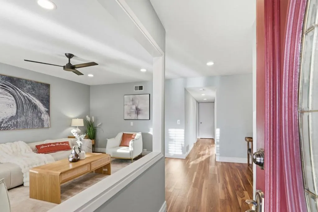 Beautifully remodeled home with bonus living space! A spacious, permitted sunroom not included in the square footage, enhances daily living with flexible year-round use, featuring removable windows that offer warmth in winter and breezy comfort in summer. The inviting living room showcases a striking bay window, while the updated kitchen features rich cabinetry, granite slab countertops, and stainless steel appliances. The family room centers around a stunning fireplace. The primary suite features a remodeled bath with an elegant vanity, a quartz slab countertop, a stylish tile surround, and tile flooring. The hall bath is similarly refreshed with tub-over-shower. Additional upgrades include new flooring throughout, new heater & A/C, new water heater, recessed lighting, updated light fixtures, dual-pane windows, and a SunRun leased solar system for energy savings. Other highlights include RV parking, extra-large linen/storage closet, and newer fencing on a private 6,288 sq. ft. lot. Fantastic locationwalk to Frost Elementary, featuring the highly regarded Indigo Program, as well as Herman Intermediate, plus Santa Teresa High. Convenient to commuter routes, shopping, and dining.