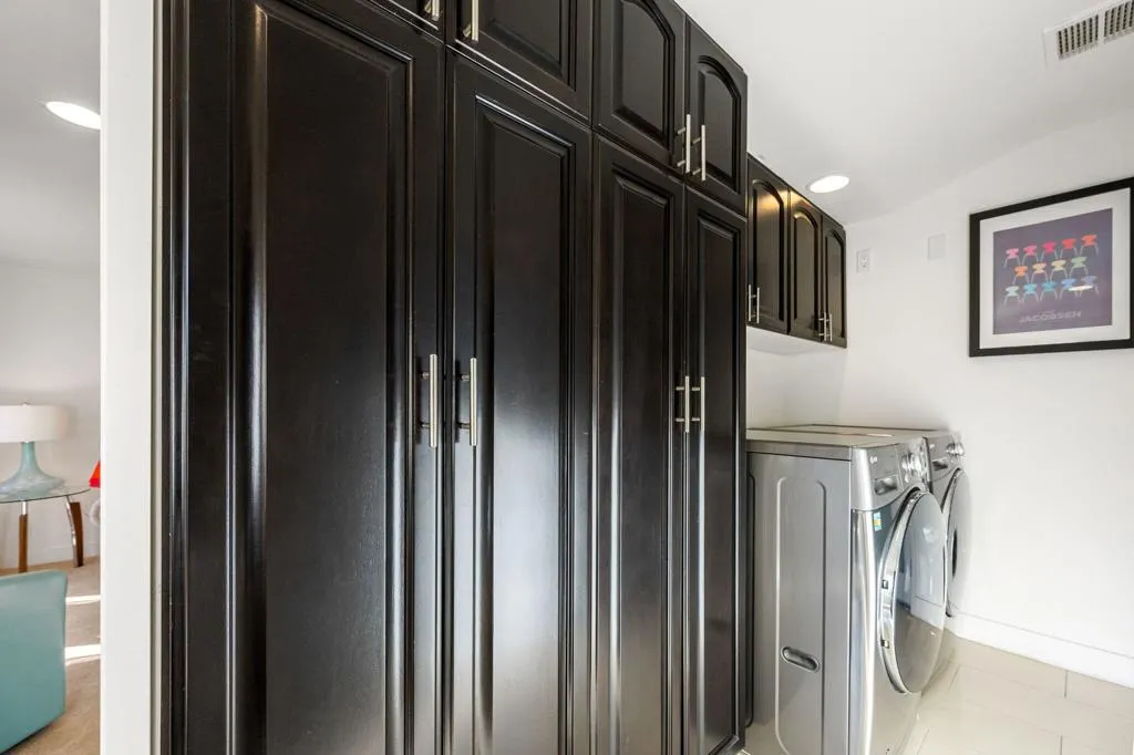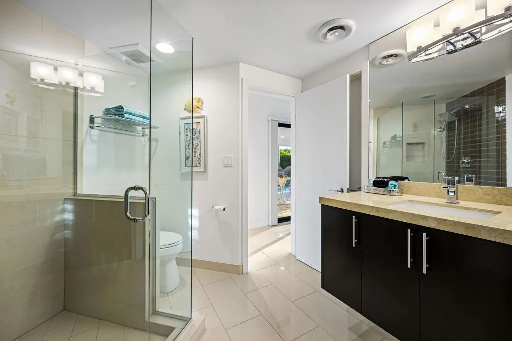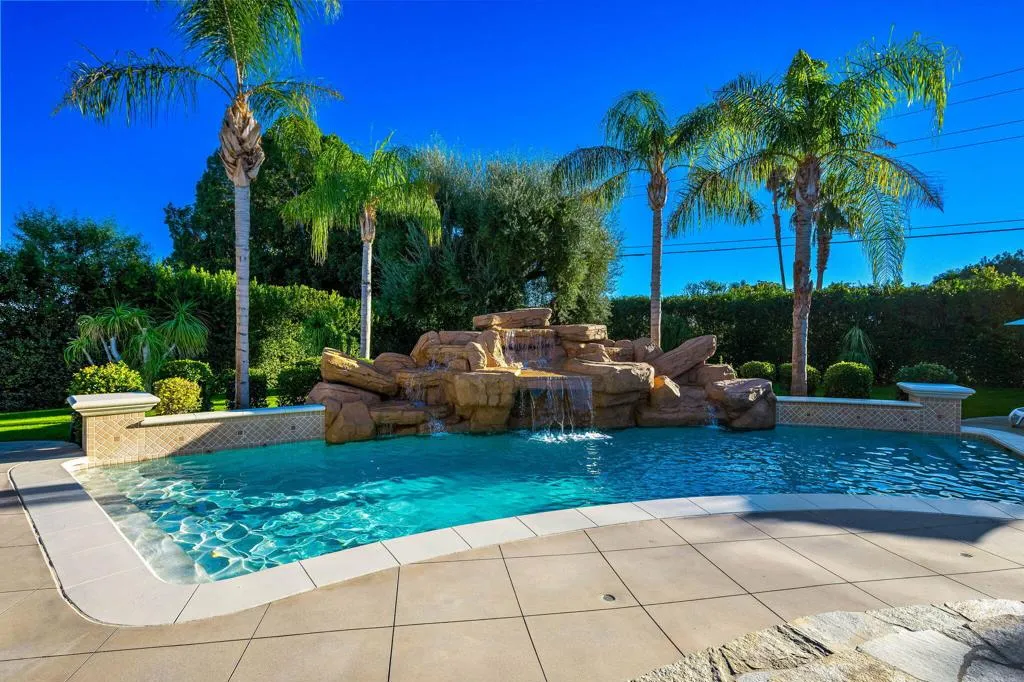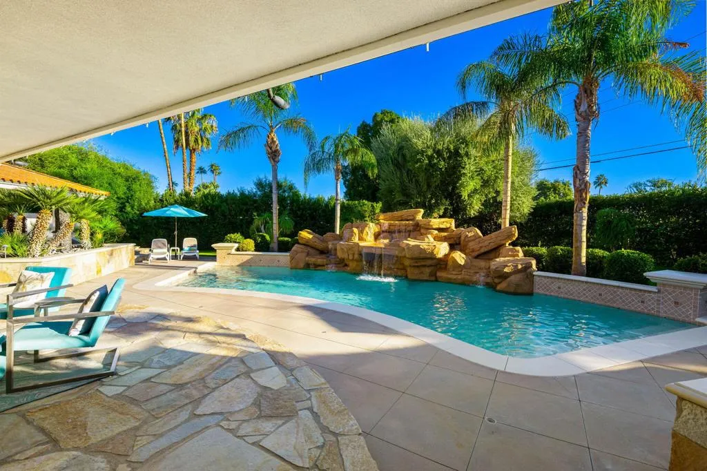 Designed and built in 1962 by the renowned architecture firm Patten & Wild, this mid-century modern residence captures the timeless elegance of South Palm Desert architecture with clean lines, effortless flow, and a seamless connection between indoors and out. Located at the end of a quiet cul-de-sac, the home offers mountain views from both the front and back, exceptional privacy, and a recessed position that enhances curb appeal. Set on an expansive 0.53-acre parcel, significantly larger than most in the neighborhood, the property offers generous outdoor living and room for future development. The backyard is designed for entertaining, with mature landscaping, thoughtful hardscape, and a 20,000-gallon pool featuring a dramatic rock formation and cascading waterfall. Inside, a 2013 renovation updated the home while honoring its mid-century roots. Open living and dining areas flow through six glass sliders to the pool and patio, including direct access from both master bedrooms. The kitchen features Thermador double ovens, a 6-burner cooktop with glass-flared hood, KitchenAid appliances, espresso cabinetry, and a designer-selected palette that reflects refined Desert Contemporary style. Each of the three bedrooms has an en-suite bathroom and walk-in closet, and a private office provides a quiet workspace. The home includes a comprehensive smart system with over 50 smart switches, remote-accessible controls for door locks, pool, thermostats, smoke and CO₂ monitors, and irrigation. Offered fully furnished inside and out, it is truly turn-key, with recent upgrades including newly stained concrete, refreshed garden beds, a new pool heater, new pumps for the waterfall and filtration system, an outdoor shower, and backyard misters. Minutes from El Paseo, this property combines architectural legacy, significant privacy, and rare oversized lot with future development potential.