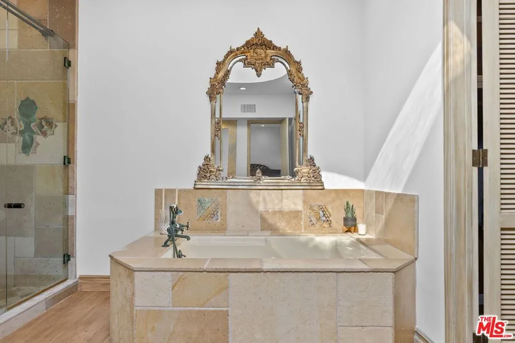 Architectural Elegance & Tranquil Luxury in the Beverly Hills Flats. Designed by Marshall Lewis with interiors by Cooper + Cooper, this contemporary estate blends Tuscan warmth with modern sophistication. Soaring ceilings, reclaimed wood details, an imported French fireplace mantel, antique chandelier, and rich hardwood floors create timeless style. The chef’s kitchen features natural wood cabinetry, high-end appliances, and seamless flow to formal living and dining areas. The primary suite offers vaulted ceilings, a private terrace, and spa-like bath with skylight, dual closets, soaking tub, and glass shower. Outdoors, enjoy a lush sanctuary with pool, spa, and tranquil landscaping. Additional features include a 240 sq ft guest house with gym & sauna, 510 sq ft garage, butler’s pantry, executive office, den, and library. A true Beverly Hills masterpiece elegant, sophisticated, and one-of-a-kind. Also available Furnished $65,000 per month.