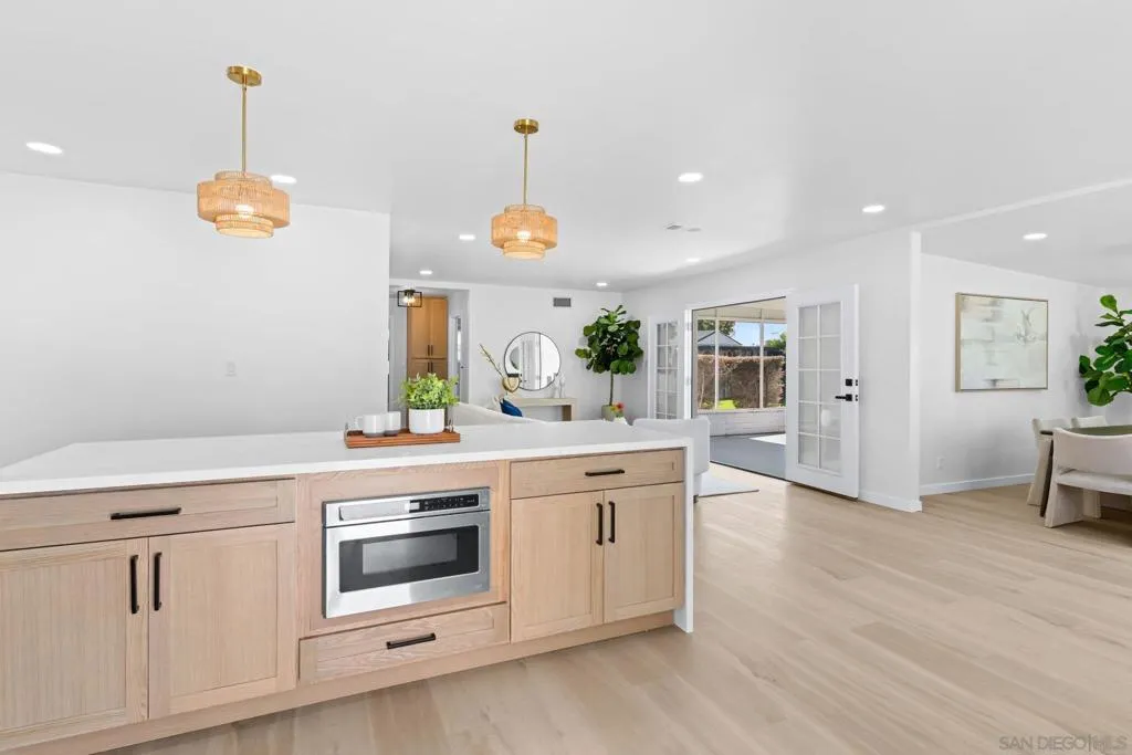 Welcome to this beautifully updated 3-bedroom, 2-bathroom home in the heart of Clairemont’s coveted “Mount Streets”. Offering approximately 1,465 sq ft of single-story living space on a 6,300 sq ft lot, this home perfectly blends modern comfort with timeless charm. Step inside to an open-concept kitchen that flows seamlessly into the dining and living areas — ideal for entertaining or relaxing with family. The kitchen features modern updates and generous counter space, while the bright living area includes a cozy fireplace for added warmth and character. All 3 bedrooms, and both bathrooms have been tastefully refreshed with contemporary finishes. Central air conditioning, forced-air heating, and upgraded appliances ensure year-round comfort. The large two-car garage offers plenty of storage and even the potential to convert into an ADU. Also, with an RS 1-7 lot the potential to add an ADU in the backyard creates future value and flexibility. Outside, the expansive backyard provides endless opportunities to design your perfect outdoor retreat — from a garden to a lounge area or additional living space. Located in a highly sought-after neighborhood, this home is surrounded by top-rated schools, parks, shopping, and dining, with Mission Bay, beaches, and major freeways just minutes away. With its unbeatable location, thoughtful upgrades, and room to grow, 5055 Mount Frissell Dr offers a rare combination of location, lifestyle, and potential. Competitively priced! Don’t miss your chance to own this Clairemont gem!