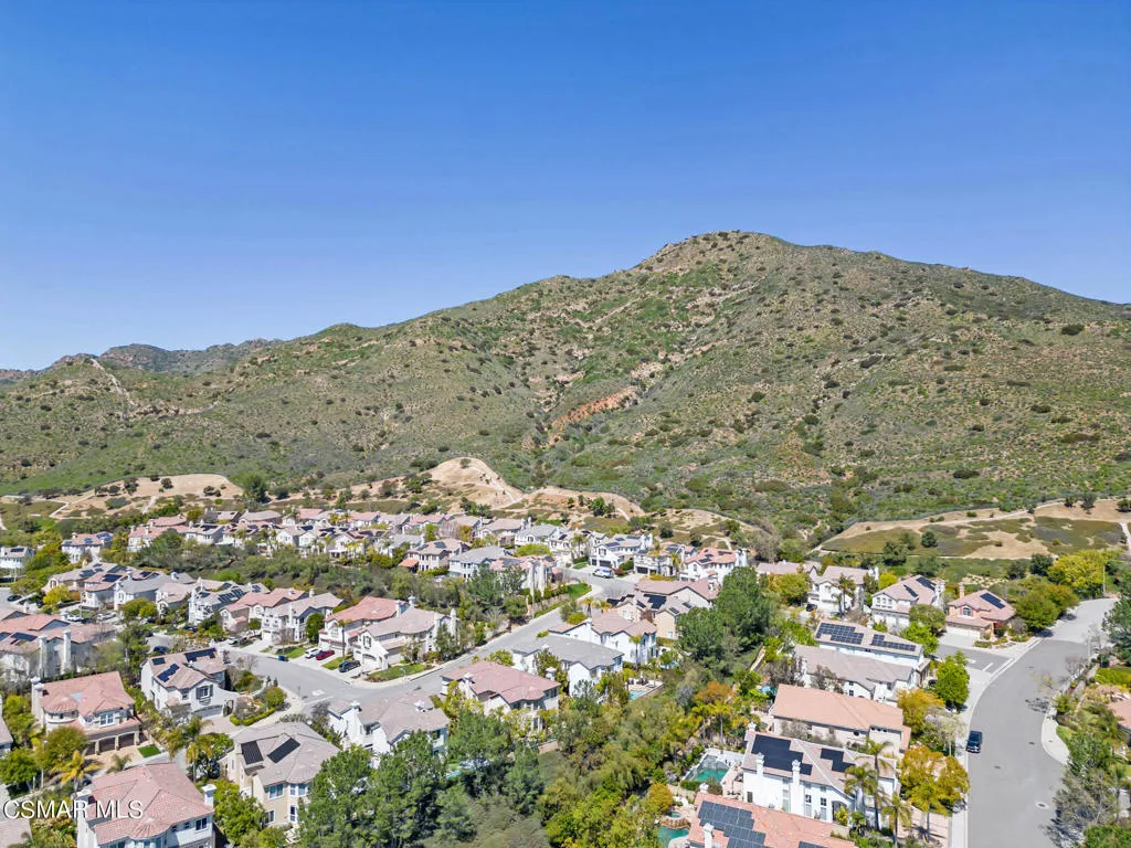 Welcome home to your contemporary modern Chambord/Oak Park property nestled up in the mountains with a serene backyard including pool/spa, built-in BBQ & outdoor fountains. Enter into the modern living room of this beautifully updated home with rich hardwood flooring throughout the downstairs, including the office and formal dining room. The wood doesn’t stop there, it is taken all the way upstairs through all the bedrooms-not a detail was left undone. The home has no carpet. This is a home in the community unlike any other on the market. The stunning gourmet kitchen, which opens to the family room with fireplace, offers white shaker cabinetry, gorgeous marble quartz countertops with separate center island, Viking appliances, undercounter microwave, new range with hood & double Viking ovens. Head upstairs to the spacious primary bedroom featuring a sitting area and lavish ensuite bath. There are 3 additional bedrooms and downstairs office, with one bedroom located up a separate staircase with its own full bath, perfect for guests or a teenager! Other features include new Tesla solar batteries with electric car charger and 3 powerwalls (system can go days off the electrical grid if necessary all while having next to $0 in electric bills monthly), System is leased at $380 per month (0$ electric bill) Home has been equipped with a full filtered water system, you can even drink from the showers! In addition to that, there is also a full alkaline water system in the kitchen. Top dollar!!! New bathroom fixtures, Newly updated Master bathroom, The Chambord development sits atop Blackbourne Point, steps away from Deerhill Park offering tennis/pickleball courts, playground, sports fields and large picnic area, perfect for hosting birthday parties or team celebrations. Surrounded by hiking trails and within the highly coveted award-winning Oak Park Unified School district, this is the home you’ve been waiting for! Oak Park High School is top 100 in the country. Come and call Blackbourne your home.