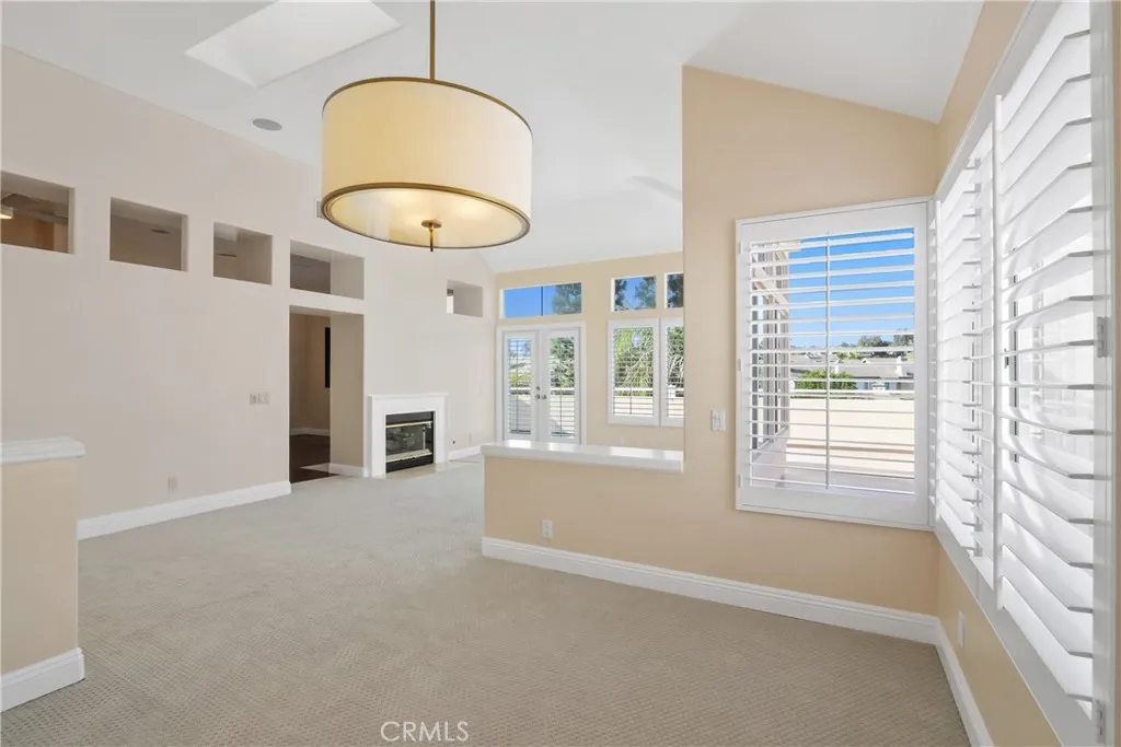 Welcome to 11 Costa Brava – Coastal Elegance in Laguna Niguel! Experience resort-style living in this beautifully upgraded SINGLE-LEVEL upper CORNER unit in the coveted Riviera community of Bear Brand Ranch. This spacious 3-bed, 2-bath condo (approx. 1,907 sq. ft.) offers an open, BRIGHT & NATURAL LIGHT-FILLED floor plan with soaring ceilings, clerestory windows, and SKYLIGHTS throughout. Entire property FRESHLY PAINTED & BRAND NEW CARPET. The inviting living and dining rooms share a cozy TWO-SIDED FIREPLACE and open through FRENCH DOORS to an EXPANSIVE WRAP-AROUND Deck (over 570 sq. ft.) with peekaboo ocean views—perfect for ENTERTAINING or enjoying COOL COASTAL BREZEES year-round. The kitchen with breakfast nook flows into a bright family room for easy, relaxed living. The primary suite features HIGH CEILINGS, a charming window seat, and a remodeled bath with stone counters and glass-enclosed shower & Walk- In Closet. The second bedroom includes a custom Murphy bed, while the third—currently an office—can easily convert back to a bedroom. Additional highlights include a Laundry Room with pull-down Attic access, Two-car garage with built-in cabinets, and plantation shutters throughout. Enjoy community amenities including a sparkling pool and spa in a private, tranquil setting—just minutes to Dana Point Harbor, Beaches, and Ocean Ranch Village with Trader Joe’s, dining, and entertainment. FHA and VA-approved tract. A stunning primary home or perfect coastal getaway where every day feels like a vacation! Models like this rarely come to market, making this an exceptional opportunity to own a premier home in one of Laguna Niguel’s most desirable coastal communities. Come see this jewel before it’s gone!!