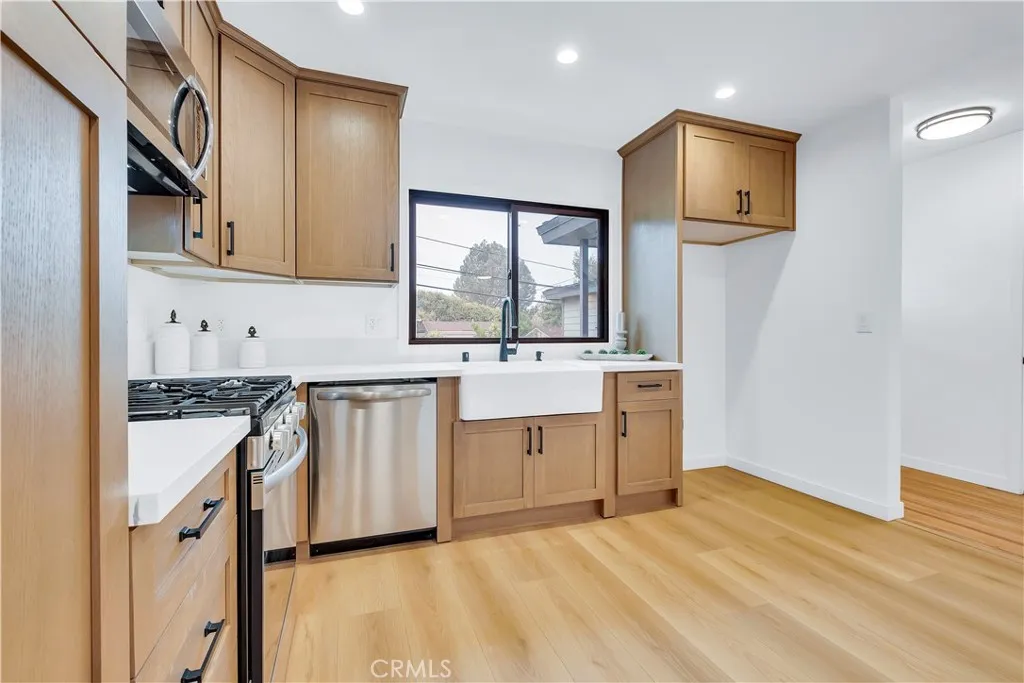 New Price Improvement!!! Welcome to your future home at 25710 Crest Rd, a true “Honey, stop the car!” opportunity in the desirable Hillside Walteria neighborhood of South Torrance. This beautifully updated 4-bedroom, 1.75-bath home is ideally located just half a mile from Rolling Hills Estates and less than five miles from the beach. Boasting exceptional curb appeal, it features new exterior paint, Hardie siding, a 50-year CertainTeed Presidential Shingle roof, new fascia boards, soffits with casement lighting, three new exterior fixtures, an oversized custom garage door, a new paver driveway, tankless water heater, 200 AMP electrical panel, EV charger, and a stunning Signet fiberglass entry door with privacy glass. The front and rear landscaping showcase new sod, sprinklers, and drip systems, along with a Carrotwood tree, Green Gage plum tree, apple and lemon trees, and 45 new privacy trees in the backyard. Inside, natural light fills the open living room with refinished original hardwood floors, smooth ceilings, new baseboards, and LED recessed lighting that flows into the dining area with beautiful views. The fully remodeled kitchen features new soft-close cabinetry, quartz countertops, a farmhouse sink overlooking the landscaped front yard, stainless steel appliances, and luxury laminate flooring. The sunroom has been converted into a fourth bedroom with a private ¾ bath, recessed lighting, mirrored closets, and direct access to the rear yard. Both bathrooms include new marble flooring, full bathroom has new vanity, and elegant finishes. Additional highlights include new dual-pane Marvin Low E3 windows, fresh interior paint, skim-coated walls, five ceiling fans, and an inside laundry room with cabinetry. The spacious backyard is perfect for relaxing, entertaining, barbecues, or gardening. Conveniently located near Trader Joe’s, AMC Theatres, Whole Foods, 24-Hour Fitness, and an array of shops and restaurants. This stunning home is also located in wonderful neighborhood within top-rated schools. This gem won’t last long, it’s a must-see!!!