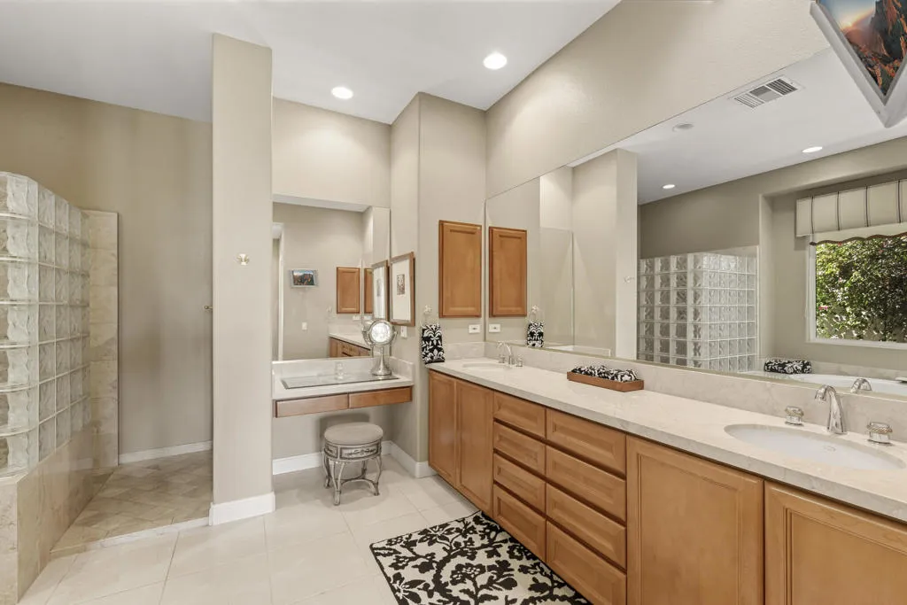 Luxury Oasis in Rancho Mirage.Discover unparalleled Desert Living in this Exquisite 3 Bedroom, 3.5 Bath Home with Flex-space (currently used as Office)Perfectly situated on the famed Gary Player Course, with panoramic views of Water feature and Mountains. The homes prime location in ”Mira Vista”, ensures a secure and beautifully maintained environment with Low HOA Dues ($399) that includes internet & cable TV, lighted tennis & pickle balls courts, community pool & BBQ pavilion.Step inside to an inviting floor plan, where soaring ceilings enhance the grandeur and natural light that floods the home through large windows that frame panoramic views.The opulent Master Suite is a private sanctuary, boasting direct access to the backyard, allowing you to wake up to the stunning views. It features 2 walk-in-closets and large bathroom with separate vanities and soaking tub. The two additional bedrooms are equally impressive, each offering is own bath ensuring comfort and privacy for your family and guests.This exceptional property is offered fully TURN-KEY, making the transition to your desert lifestyle effortlessly. ”Just bring your suitcase & toothbrush” truly applies here.Experience the best of Rancho Mirage living, where sophisticated design meets a prime location. This home is an entertainer’s delight and peaceful retreat, all in one.