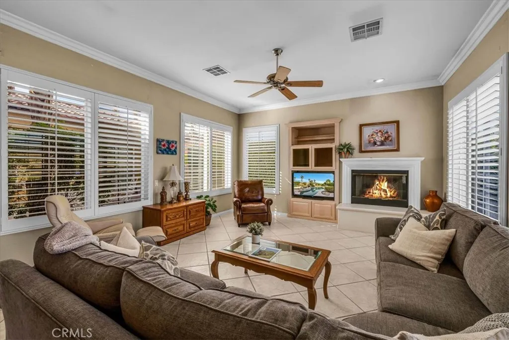 Welcome to this stunning Tuscan-inspired retreat in the exclusive gated lake community of Santo Tomas. This beautifully maintained home offers the perfectblend of luxury and serenity, boasting 3 spacious bedrooms, 2.5 baths and 2,384 square feet of living space on a generous 10,019 square foot lot. As you enter, you’ll be greeted by the elegant formal dining room, perfect for hosting dinner parties and special occasions. There is a nice separation of bedrooms with the primary bedroom being in the front of the home with a walk-in closet, separate tub, showerand dual sinks. The primary bedroom and formal dining room both open up to a private courtyard. The other 2 bedrooms are good size sharing a full bath. Gorgeous tile floors and plantation shutters throughout. The heart of the home features a spacious eat-in kitchen, equipped with granite countertops, breakfast island with sink and a butlers pantry. The kitchen flows seamlessly into the living room where you will find a built-in entertainment center and cozy fireplace.Sliding glass doors lead out to the stunning rear yard for entertaining, complete with a refreshing pebble tec saltwater pool/spa and firepit. The HOA includes a social/tennis memebership to the adjacent Mission Hills Country Club.