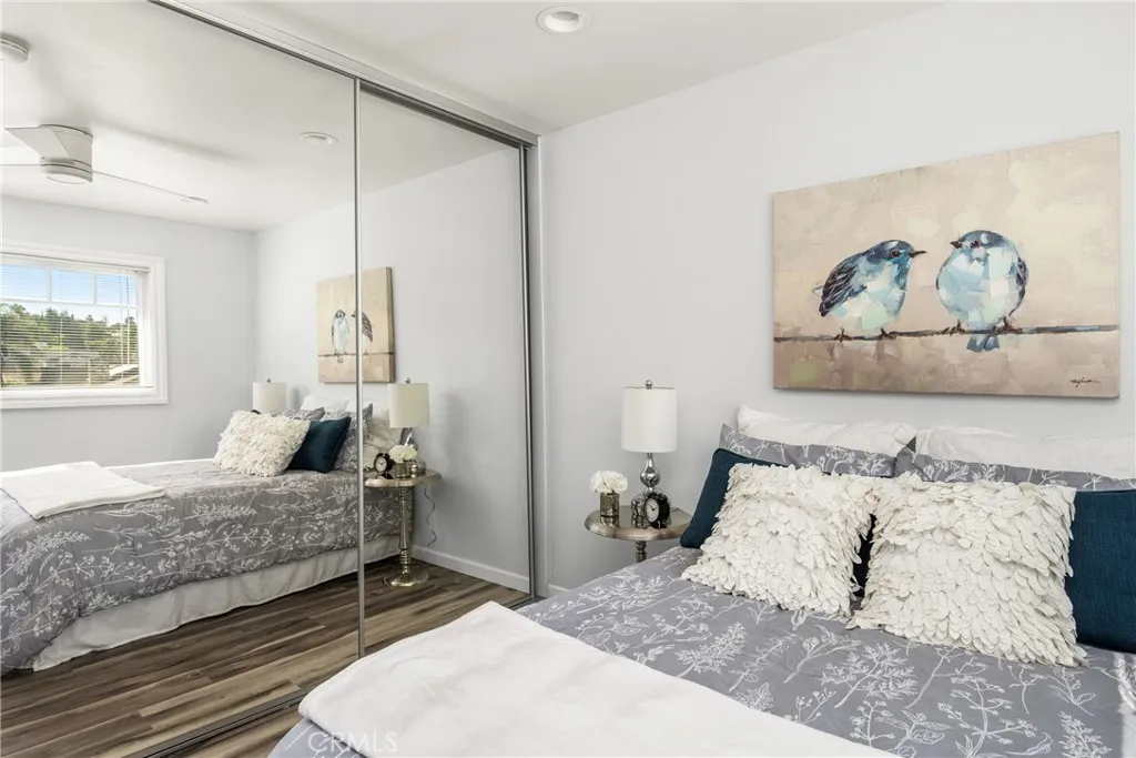 Welcome to this stunning European-inspired residence, offering timeless elegance and modern upgrades throughout. Situated on a large, beautifully landscaped lot, this approximately 2,100 sq. ft. home features 4 bedrooms and 3 bathrooms—designed for both comfort and sophistication. From the moment you arrive, you’ll be captivated by the home’s striking curb appeal, highlighted by a graceful S-shaped front wall with custom outward-swinging barn doors that create a grand and inviting entrance. Beyond the gates, lush greenery and vibrant gardens set the tone for the serene outdoor oasis that awaits. The property boasts a variety of fruit trees, including mature avocado, lemon, fig, mango, banana, and dragon fruit—creating a private garden paradise. The exterior is finished with durable 50-year Tex Cote paint, ensuring both beauty and long-lasting protection. Inside, you’ll find an inviting living area featuring gleaming wood flooring, dual-pane windows, and an elegant fireplace that anchors the space in warmth and style. The open layout flows seamlessly into a fully remodeled custom kitchen, complete with high-end finishes, modern appliances, and exquisite craftsmanship. Each remodeled bathroom reflects thoughtful design and luxurious comfort, evoking a spa-like ambiance. The primary suite is a tranquil retreat filled with natural light, luxurious flooring, and a beautifully updated en-suite bathroom. Additional bedrooms continue the theme of comfort and elegance—ideal for family, guests, or a home office. Step into the backyard and experience the ultimate entertainer’s paradise. This expansive outdoor space features a sparkling pool, multiple lounging and dining areas, and lush landscaping that creates a peaceful resort-style setting. Whether hosting weekend gatherings or enjoying quiet evenings under the stars, this backyard was made for unforgettable memories. Additional features include solar panels, ample parking, and meticulous landscaping that enhances the property’s European charm and sense of tranquility. This exceptional home seamlessly blends European character, modern luxury, and the best of Southern California outdoor living.