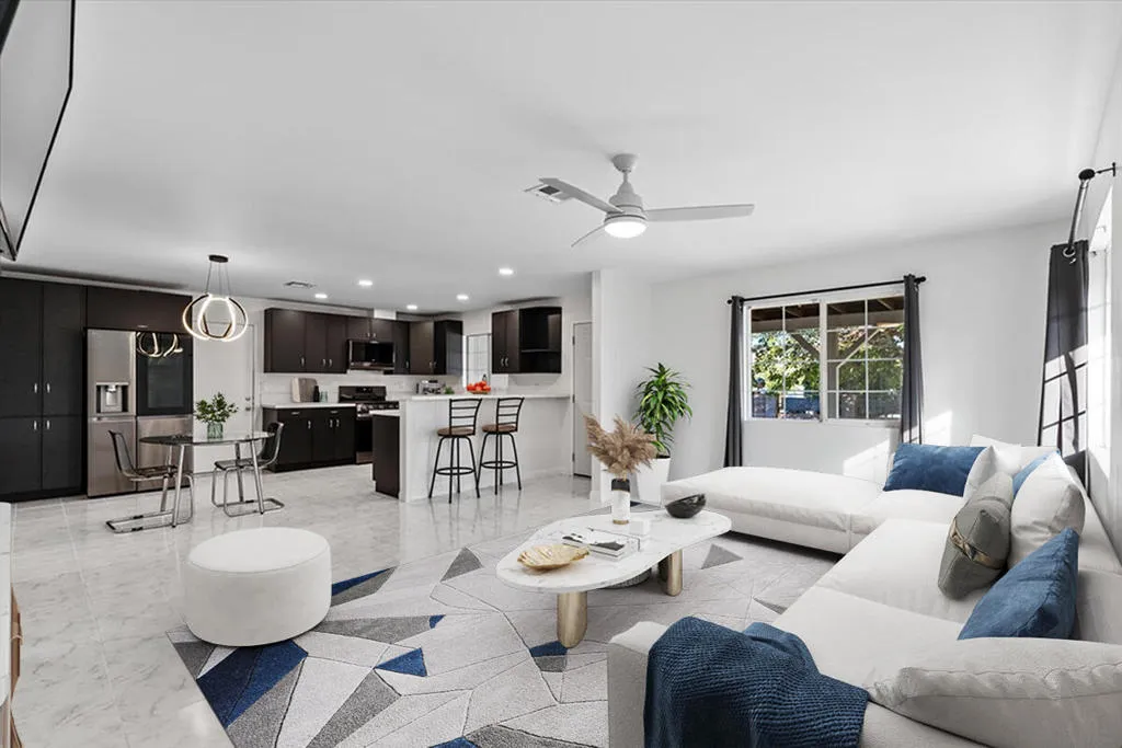 Welcome to this stylish contemporary home situated in the heart of Desert Hot Springs. This exquisite 3BR, 2BA residence unfolds over 1,602 sq ft, exuding contemporary elegance and craftsmanship. The home greets you with recently renovated flooring and seamlessly smooth, matte walls, setting a backdrop of understated luxury. The expansive chef’s kitchen presents modern counters and sleek cabinets, perfectly complemented by upscale appliances and new light fixtures that provide ambient illumination throughout.The 500 sq ft en-suite is a sanctuary of relaxation, featuring a new mini-split for personalized comfort. A new electrical sub-panel prepares the home for seamless solar integration, reflecting the property’s forward-thinking design ethos. Outdoors, the large lot offers serenity and privacy, framed by a sturdy block wall and adorned with custom metal gates that blend art with function.Positioned conveniently close to the post office and shopping, this home harmonizes everyday convenience with refined living. Immerse yourself in this luxurious retreat and experience the pinnacle of desert living. Ideal for those who appreciate meticulous attention to detail, this property redefines contemporary elegance in a vibrant desert setting.