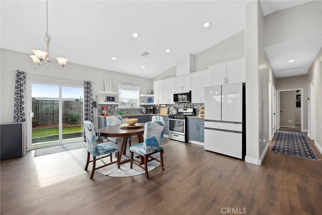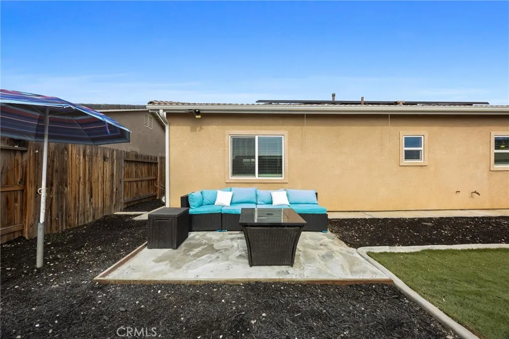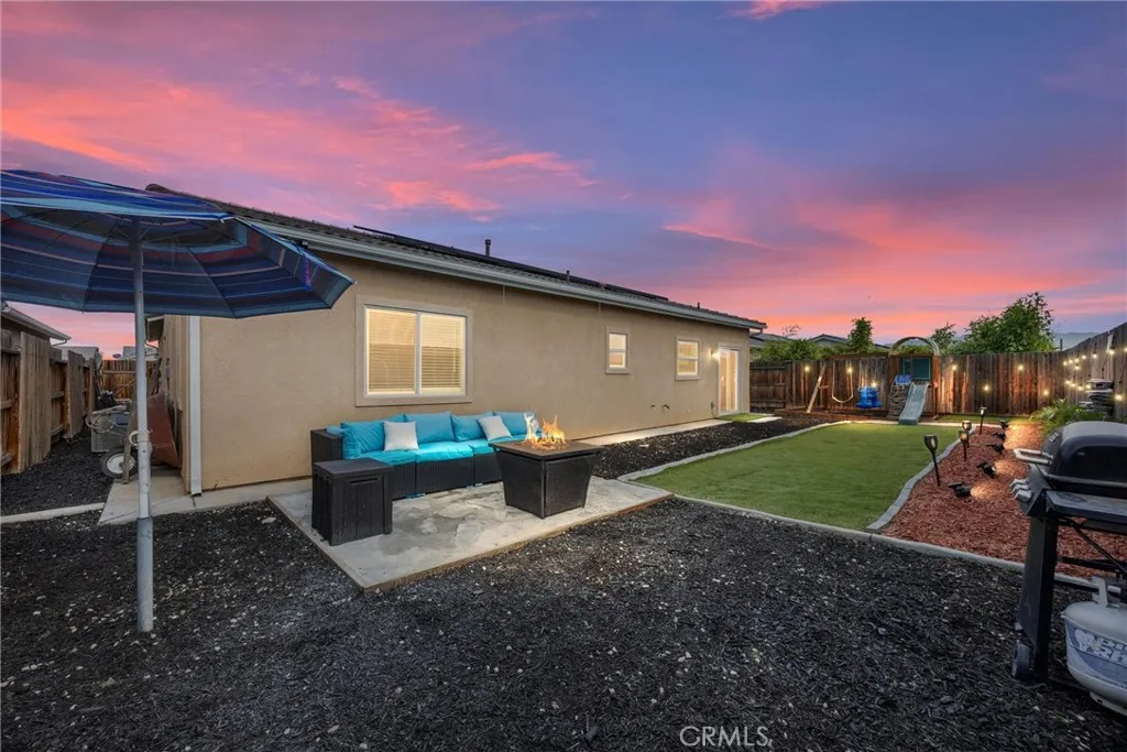 Welcome to 9907 Turning Leaf Ln in Bakersfield, a beautiful 4-bedroom, 2-bath home that blends modern updates with everyday functionality. Recently repainted inside and out, this home features leased Tesla (SolarCity) solar panels, a fully fenced backyard with drought-efficient faux grass, and a refreshed front yard with an expanded driveway. The open kitchen offers stainless steel appliances including the refrigerator and gas stove, modern lighting, and electrical already in place for a future island. Both bathrooms include high-efficiency toilets, updated fixtures, and a shower and tub combination in the primary suite with a closet conveniently located just off the bathroom. Additional features include smart switches compatible with Alexa, updated lighting throughout, an electric fireplace, and a laundry room (W/D included) that leads directly to the two-car garage with built-in shelving and extra storage. The side yard offers approximately 13 feet of space, providing potential for RV or truck parking. Located in a quiet, established neighborhood close to parks and schools, this home combines comfort, efficiency, and style in one inviting package.