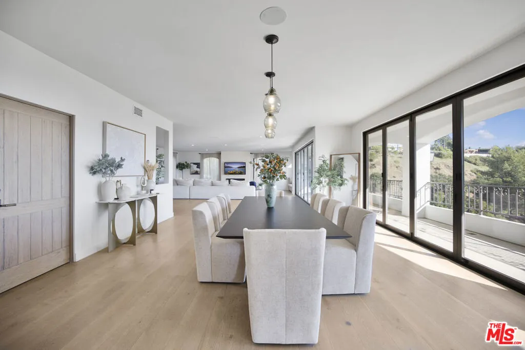 A newly built contemporary Mediterranean compound in the Hollywood Hills with sweeping views of Los Angeles and SoFi Stadium. Celebrity-owned, this property combines modern luxury with natural elegance. The open floor plan features a spacious living and dining area that flows into a gourmet kitchen with custom cabinetry and sliding glass doors leading to a large balcony overlooking the city. The nearly 2,000 sq ft primary suite includes a wet bar, Juliet balcony, fireplace, indoor/outdoor lounge, expansive bathroom, and a massive walk-in closet. The lower level offers a theatre, office with a view, wellness area with a sauna, massage space, and gym. The backyard is designed for entertaining, complete with a pool, spa, outdoor bar, fire pit, and BBQ area. Additional features include smart home technology, gated parking for four cars, and a three-car attached garage. Located near Runyon Canyon and minutes from Hollywood and Studio City, Villa de Vistas offers premier amenities and panoramic views in one of LA’s most desirable settings.
