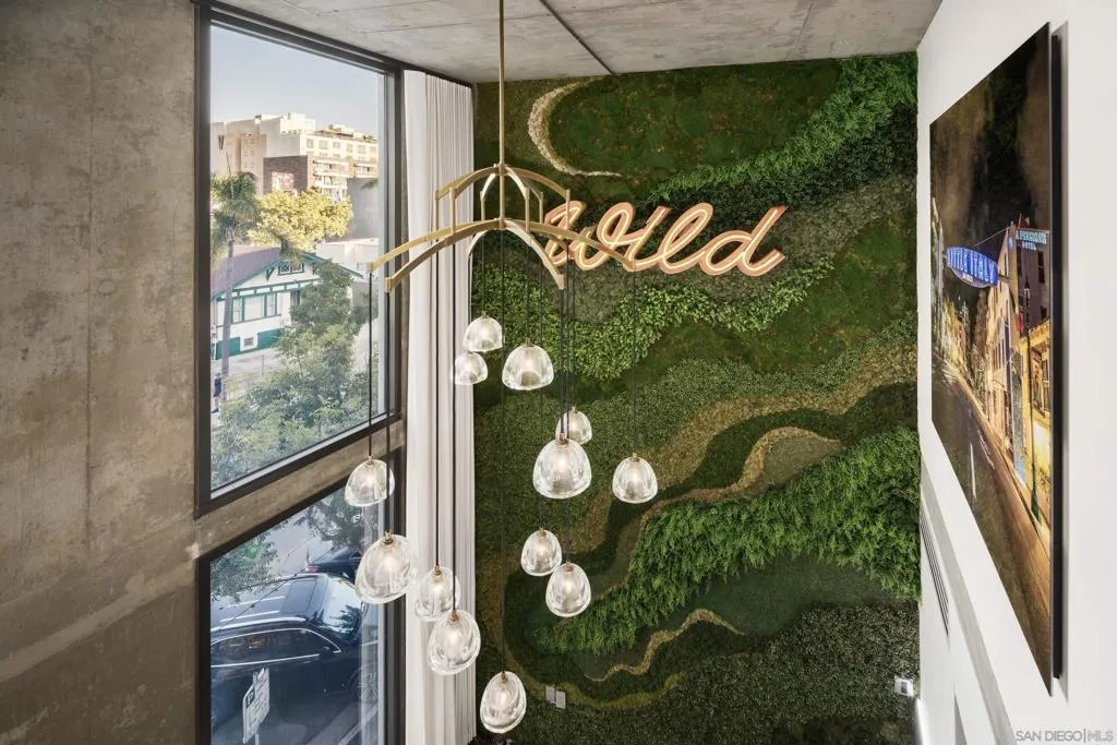 Welcome to DOMA’s most iconic residence! — In the heart of Little Italy with award-winning restaurants, vibrant farmers markets and the bay front, just steps from your front door. This stunning corner unit boasts a generous wraparound balcony with sweeping city and ocean views. Exquisite features include: dramatic 18-foot double vaulted ceilings, exposed concrete walls, expansive floor-to-ceiling windows, Villa Barcelona hickory wood floors with Rosso Levanto marble borders and brass inlays, an 18 foot living moss wall and halogen tech lighting including a stunning entry fixture designed by the renowned Isamu Noguchi. The home is fully automated with the finest technology: Savant home automation of all audiovisual systems, lighting and custom automated drapery with retractable window screens. The center kitchen is a chef’s dream, outfitted with integrated Fisher & Paykel appliances, a Brazilian quartzite floating island and custom African mahogany cabinetry. Ascend the diamond metal plate staircase to an open-air primary retreat with custom-forged iron & glass railings and custom automated drapery throughout. and a custom walk-in closet by California Closet Designs. An AWOL Vanish Laser TV remains fully contained in custom cabinetry when not in use, preserves the unobstructed views of Little Italy from the bedroom. The bathroom sanctuary boasts Calacatta Viola marble countertops, a standalone soaking tub, a walk-in shower and a separate toilet room. The home is furnished with designer pieces from Roche Bobois and RH for a flawless finishing touch! This exceptional residence includes two oversized side by side underground parking spaces and a rare and valuable 170-square-foot storage room. Residents of DOMA enjoy top-tier amenities, including a fully equipped fitness center, rooftop terrace with barbecues & sweeping ocean views, secure bicycle storage, and a stunning lobby enhanced by a state-of-the-art access control system. DOMA stands proudly in the heart of Little Italy — offering what is arguably Downtown San Diego’s most coveted address.