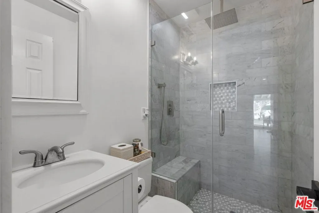 A rare opportunity to own a newly renovated and expanded single-level pool home in Woodland Hills, adjacent to the coveted Walnut Acres neighborhood and zoned to top-rated schools: Welby Way Charter Elementary, Hale Charter Academy, and El Camino Real Charter High School. This luxury 4-bedroom, 3-bathroom residence offers approximately 1,888 sq ft of thoughtfully designed living space. Step through the oversized modern pivot door into a dramatic formal entry with soaring ceilings and an abundance of natural light. The open-concept layout leads to a beautifully updated kitchen featuring white shaker cabinetry, stainless steel appliances, and a large center island ideal for gathering. The kitchen flows into the spacious great room and dining area, highlighted by a modern fireplace and a stacked stone media wall, with large windows and sliding doors that lead you to the stunning resort-style backyard. The west wing of the home features a serene primary suite with a generous walk-in closet and an ensuite bath, complete with a floating vanity cabinet, dual sinks, and a spacious walk-in shower. An additional bedroom and full bathroom on this wing offer flexibility for guests, a nursery, or a home office. On the east wing, two generously sized secondary bedrooms provide ample space, including one with a walk-in wardrobe closet, and a stylish full bathroom with a bathtub, ideal for family or guests. Completed in 2023, the backyard retreat features a sleek modern pool and spa with a Baja shelf and umbrella sleeve. The UV filtration system enhances water quality by reducing bacteria and chlorine for a more natural, low-maintenance swim experience. The irrigated turf lawn is perfect for pets, play, or relaxing under the California sun. Additional highlights include an upgraded electrical panel, HVAC, and insulation replacement, as well as luxury waterproof, scratch-resistant flooring throughout. Located minutes from scenic hiking trails, The Village, Westfield Topanga, Rams Training Facility, and the Calabasas Commons, this home offers the ideal blend of modern comfort, lifestyle, and location. *Disclaimer: Some property images have been digitally enhanced or virtually staged for illustrative purposes.