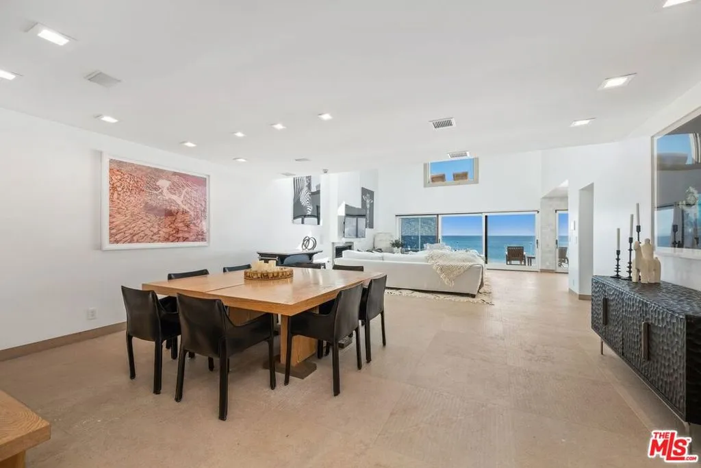 Fully furnished and ready for move-in immediately!! This property spans 50ft on the deepest section of beach on Malibu Rd & has unobstructed panoramic ocean views of Santa Monica Bay, Catalina & Point Dume. The property features a dual gated entry, driveway w/ ample secure parking & courtyard that leads to the custom fossilized front door. The main floor is expansive & features an open floor plan w/ formal dining area, living area w/ double-height ceiling & newly remodeled kitchen w/ a massive marble island, custom cabinetry & brand-new stainless-steel appliances by Viking and Wolf. An abundance of natural light fills the space w/ a large skylight & floor-to-ceiling sliding glass doors that open to a large balcony w/ glass railings that span the width of the house. The primary suite encompasses the entire top floor w/ his & her walk-in closets, custom blue marble bathroom w/ dual vanity & water closets, skylight & soaking tub w/ ocean views. The primary bedroom features a fireplace & sliding glass doors that lead out to the balcony & west facing sunset views. The bottom floor features three additional en-suite bedrooms, one of which is oceanfront w/ direct balcony access & the other has triple bunkbeds. Lastly, there is an oceanfront den, laundry room & private beach access. Centrally located off PCH in the highly desirable Malibu Rd community w/ easy access to world class dining at Nobu or Lucky’s, designer shops in the Country Mart & countless miles of hiking at Bluff’s Park & Puerco Canyon.