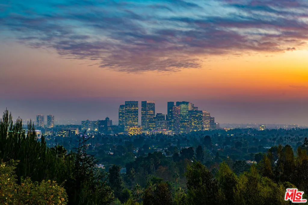 Commanding a premier position atop a coveted promontory on “Billionaire’s Row,” this private nearly acre estate, designed by the esteemed architectural firm Benton, Park & Candreva, is a warm contemporary villa showcasing extraordinary panoramic views from Century City to the Pacific Ocean. A gated front courtyard leads to a grand entrance with soaring ceilings that opens to a luminous living room framed by walls of glass, seamlessly blending indoor elegance with outdoor splendor. The step-down media lounge, complete with a refined wet bar and curated art display, flows effortlessly into the formal dining room crowned by a radiant skylight. The primary suite serves as a serene retreat with a spa-inspired bath, dual walk-in closets, and direct access to tranquil outdoor terraces. The expansive dine-in kitchen balances form and function, while the lower level offers a mini kitchen, additional living areas, four guest suites, a temperature-controlled wine cellar, and ample storage. Outside, the resort-style pool, al fresco dining areas, and the signature “Summer Entrance” create a dramatic yet inviting atmosphere for grand-scale gatherings. Moments from The Beverly Hills Hotel and Rodeo Drive, this exceptional property presents a rare opportunity to reimagine and update a timeless architectural estate into a bespoke dream home, set against one of the most spectacular backdrops in Los Angeles.