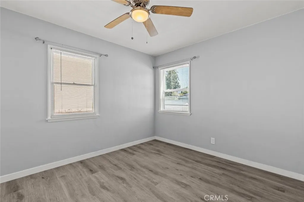 This cozy apartment offers a comfortable layout and recent updates throughout. The inviting living area features a wall heater, AC wall unit, and updated laminate flooring that flows seamlessly through the entire unit. The galley-style kitchen includes ceramic tile countertops, a stove, and a refrigerator, with a small dining area and ceiling fan for added comfort. The bedroom also features a ceiling fan. Enjoy peace of mind with dual-pane windows, fresh exterior paint, and newly landscaped surroundings. Off-street parking is available behind the building for residents’ convenience. Available for immediate move-in!