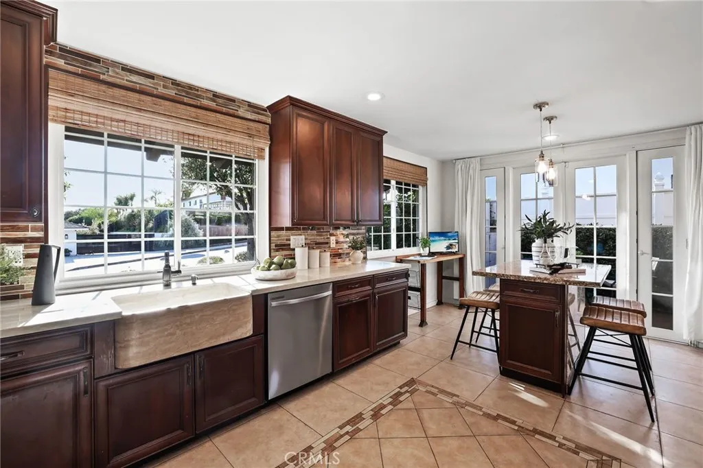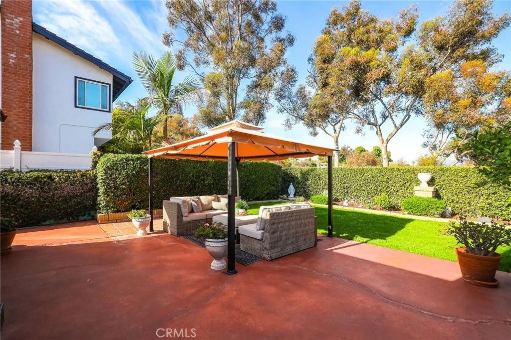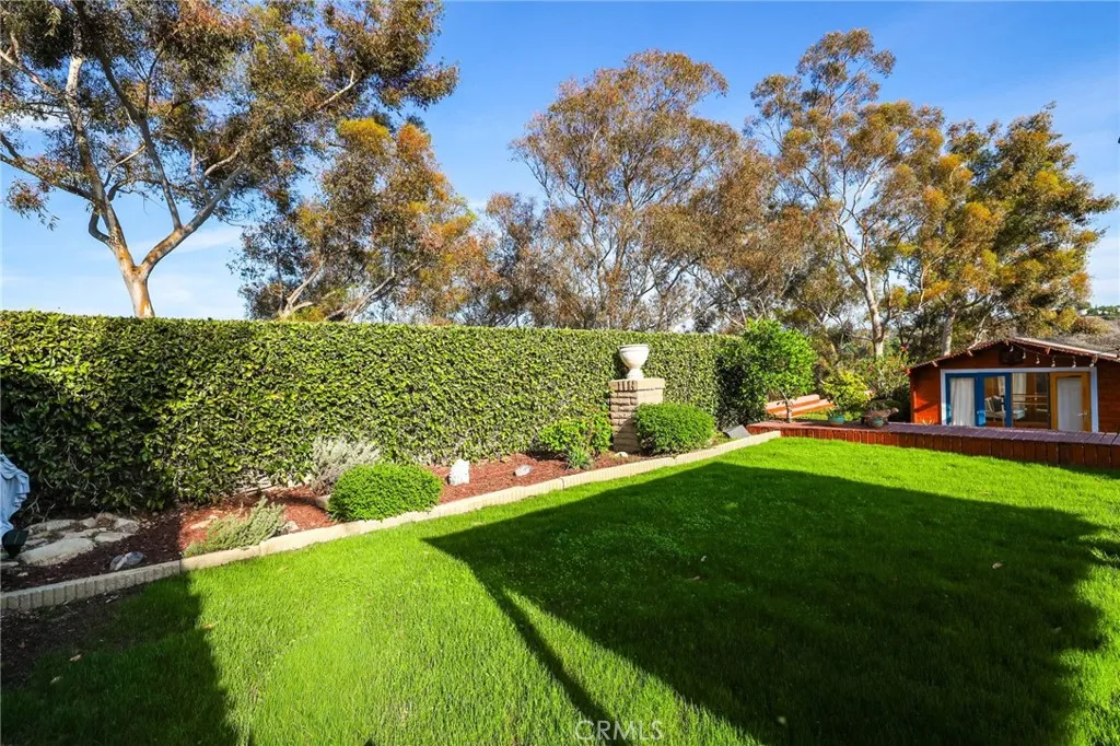 Looking for a home with a spacious, private yard and stunning panoramic views? You’re in the right place! Step into a private backyard retreat thoughtfully designed across two tiers to balance function and flow. The upper level features flourishing orange and lemon trees alongside an open patio and sunny grassy yard, creating a perfect space for relaxing or entertaining. The lower tier offers additional room to enjoy the outdoors in peace and privacy. Down below, enjoy a covered patio ideal for year-round gatherings, plus a detached studio currently set up as a dance and workout space — a perfect home gym, office, or guest suite. Surrounded by privacy and scenic views, this outdoor space is more than just a yard, it’s where everyday life meets possibility. Inside, the sun-drenched great room welcomes you with vaulted, beamed ceilings, tile flooring, recessed lighting, and a cozy fireplace that anchors the space in warmth. The gourmet kitchen is designed for connection, featuring stainless steel appliances, rich wood cabinetry, a farmhouse sink, granite countertops, and a spacious center island, all seamlessly connected to the outdoors through French doors that open to a tranquil side yard. Downstairs, a flexible freshly painted second living area includes custom built-ins, natural light, and a private bedroom with en-suite bath and walk-in shower, ideal for guests, in-laws, or a work-from-home setup. Upstairs, the primary suite is a serene retreat with laminate wood flooring, recessed lighting, and a beautifully refinished private balcony, along with an updated en-suite bathroom with a walk-in shower. Two additional upstairs bedrooms, freshly painted, feature laminate flooring, recessed lighting, and share a balcony with peaceful views. The secondary bathroom offers marble flooring, granite counters, and a tiled shower/tub combo. A freshly painted interior, move-in ready condition, and thoughtful upgrades add to this home’s charm. Located in the award-winning Saddleback Valley Unified School District, this home is just moments away from schools, freeway access, shopping and dining! Enjoy lake access with a low HOA and no Mello-Roos! As a member of Lake Mission Viejo, you’ll have year-round access to exclusive waterfront amenities. This versatile split-level home offers the space, flexibility, and lifestyle you’ve been waiting for. Don’t miss this opportunity!