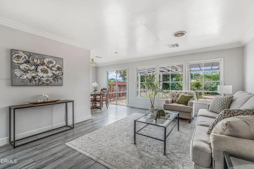 Welcome to this beautifully remodeled 3-bedroom, 1-bathroom home, ideally situated in the heart of scenic Port Hueneme. Just minutes from the beach, parks, schools, and much more, this charming residence sits on a generous 6,969 sq ft corner lot and offers 1,051 sq ft of stylish, comfortable living.The home’s great curb appeal starts with a beautifully landscaped front yard, framed by elegant palm trees and a spacious driveway.Step inside to discover a bright and inviting living space with updated laminate flooring that flows seamlessly through the cozy dining area. The kitchen features ample storage, a dual basin sink, and two-tone cabinets that add warmth and character.The bathroom offers a relaxing retreat with a full bathtub, ideal for unwinding after a long day. Each of the three bedrooms is filled with natural light, generous closet space, and a welcoming sense of comfort.The expansive backyard is perfect for entertaining, gardening, or simply enjoying the coastal breeze. With a convenient side entrance and plenty of outdoor space, the lot also offers great potential for an ADU, adding even more value and flexibility.Whether you’re looking for a cozy coastal retreat or a family-friendly home with room to grow, this nicely updated Port Hueneme gem offers it all, location, charm, and opportunity.