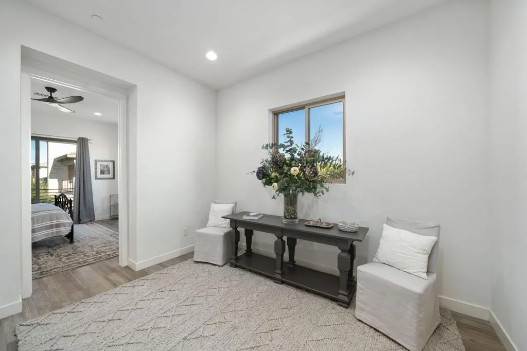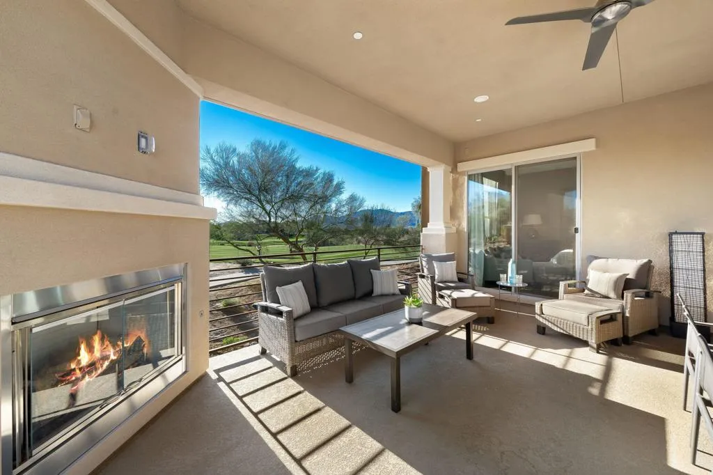 Perched in the premier location within The Retreat at Desert Willow, this top-floor corner residence represents the largest and most sought-after floor plan–offering complete privacy and panoramic 180 views overlooking Holes #5 and #6 of the Desert Willow Firecliff Golf Course and the surrounding desert landscape. A private elevator leads from the ground-level entrance and garage directly into your home, where refined interiors and thoughtful details await. This residence is offered fully turn-key, including a 2019 BMW X5 (only 8,600 miles) and a 2019 Yamaha street-legal golf cart. Step out onto the expansive wraparound balcony, featuring a gas fireplace, commercial-grade outdoor heater, BBQ, and designer outdoor furnishings–perfect for relaxing or entertaining under the desert sky. Inside, every element reflects professional interior design, including curated artwork, high-end furnishings, complete kitchenware, cookware, and dining sets. Bosch appliances, electric window shades, three large flat-panel TVs, and two Bowers & Wilkins Bluetooth speakers enhance everyday comfort and entertainment. Smart features include NEST front door lock and thermostats–both remotely controllable–and a garage mini-split A/C unit for year-round convenience. Additional highlights include a spacious laundry room, a walk-in pantry with opening windows, and ample storage both inside and out. Comprehensive HOA coverage provides cable TV, internet, phone, water, trash, and recycling (excluding electricity and natural gas). Ownership also includes a Platinum Club Golf Membership, offering 25-30% discounts on variable green fees, 60-day advance tee time privileges, Golf Shop savings, and direct golf cart access to the Desert Willow Golf Academy and courses. Lovingly maintained and never rented, this residence has been enjoyed by its owners for approximately three months per year over the past 41/2 years, with consistent servicing of the A/C, heating, elevator, and tankless water heater. Discover an unmatched combination of luxury, privacy, and lifestyle at Desert Willow–where resort-style living meets effortless ownership.