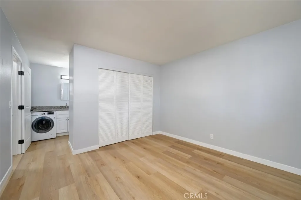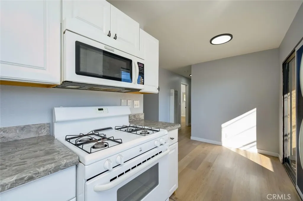 This adorable condo offers the perfect blend of style, comfort, and security—just minutes from the beach. Fresh paint and updated flooring create a cohesive, modern feel from the moment you step into the spacious living area, and continues throughout the home. The kitchen and bathrooms feature contemporary updates that tie the design together beautifully. The kitchen offers all the conveniences of an oven, microwave, dishwasher and refrigerator. Both bedrooms offer generous closet space with sliding doors and large windows that fill the rooms with natural light. The primary bedroom includes a private bathroom that conveniently shares space with the in-unit washer/dryer combo. The building is gated and the unit comes with a one-car garage.