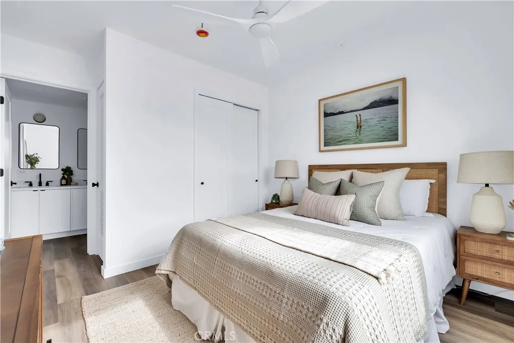 • Primary suite – generous on-suite bathroom, double-sink, matte-black fixtures, ceiling fan