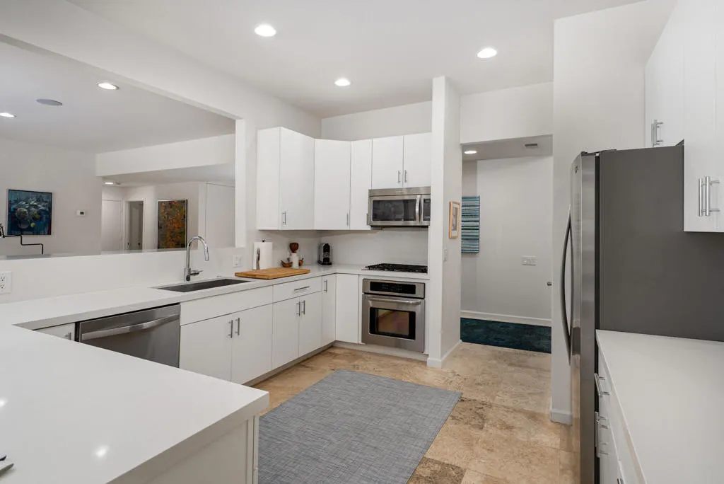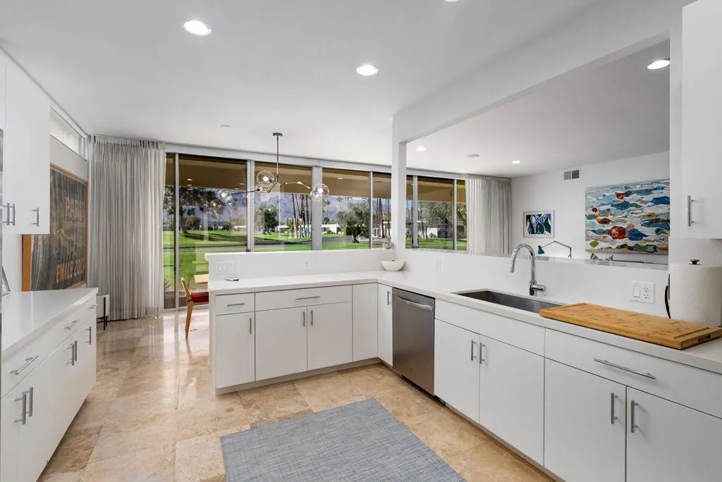 Perfectly sited on the West facing 16th fairway, in the most desirable floorplan at the coveted Seven Lakes Country Club, this perfect villa is just waiting for you to call it home! Surrounded by gorgeous new desertscaping, once inside you’ll spread out over 2500 sq ft in this Richard A. Harrison designed 3bed/3bath. Past the shadow and breezeblock walls, the unit’s airy layout is highlighted by large format tile floors that extend seamlessly onto your outdoor space. The huge kitchen has just been beautifully remodeled, including an inviting breakfast bar, to open into the spacious living and dining areas, where you can snuggle up by your fireplace on cool evenings. Your leisure deck offers sweeping Mt. San Jacinto and lake views, making this perfect a desert getaway you’ll never want to leave! All three spacious bedrooms offer great closets, as well as walk in showers in both primary suites. Live with ease as recent upgrades include a newer main water line, laundry room, hot water heater, exterior sunshades and window screens. Out your door, the tranquil pool is just steps away. Past the 24-hour guarded gate, ‘The Gem of the Desert’ offers a unique elevated lifestyle with its Ted Robinson-designed 18-hole executive golf course, 15 pools and spas and lively William Cody designed clubhouse waiting to welcome you to its formal dining room, casual cocktail lounge and a terrace overlooking the famous Seven Lakes fountain. Welcome home!