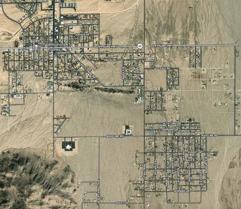 Owner may carry! Turn Key lot with utilities and paved road. 11,100 square foot (quarter acre) lot the trendy Hanson Area neighborhood in 29 Palms! Ideal for a developer or long term investor. The Hanson Area is known for its views. Set on a gentle incline offering northern vistas of the Bullion Mtns. To the west are the boulder studded Little San Bernardino Mtns with Joshua Peak. To the east are the Twentynine Palms Mtns. Quiet neighborhood. Close to the 29 Palms Restaurant and Inn, Theatre 29, and the Tortoise Rock Casino. Just down the road is the 29 Palms gate to the Joshua Tree National Monument. About 3 million tourists visit the park annually. Great vacation area. A few miles to the north is downtown 29 Palms with the new Freedom Mall and all amenities. Celebrities, artists and musicians are now calling 29 Palms home more than ever before. Would be great for a designer modern home or go with a prefab manufactured. Buyer must contact the city for all questions on building and usage. Buyers must contact the utilities agencies for all questions on utilities. APN: 0624-012-18-0000 Address is not a real address and for marketing purposes only. GPS: 34.122244, -116.035248 Don’t Wait! Call Now! Additional parcels also for sale APNs: 0624-012-19-0000 & 0624-012-17-0000