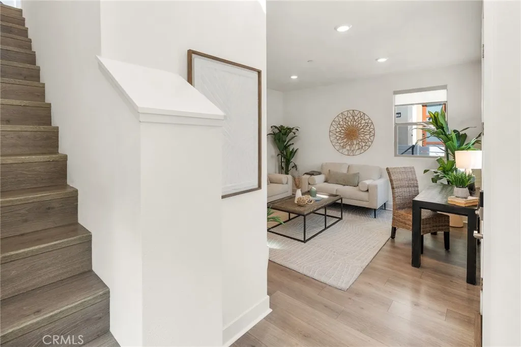 Step inside a home designed for convenience and coastal enjoyment in the gated community of Ponte Vista, adjacent to Rancho Palos Verdes. Built in 2023, this modern 3-bedroom, 2.5-bath home delivers advantages rarely found in older South Bay homes: up-to-date systems and energy-efficient design. It occupies a premium lot with a unique rotated orientation, 1 of only 3 within Harbor Pointe’s 94-home neighborhood. Its angled placement creates practical separation from neighboring homes, enhancing natural light exposure while providing an inviting front courtyard, side storage, and greater privacy. Featuring over $80,000 in carefully selected upgrades, the 1,709 sq ft (BTV) interior showcases the home’s functional elegance.
