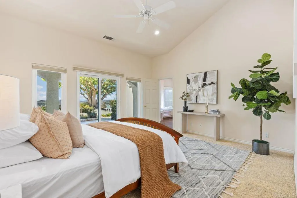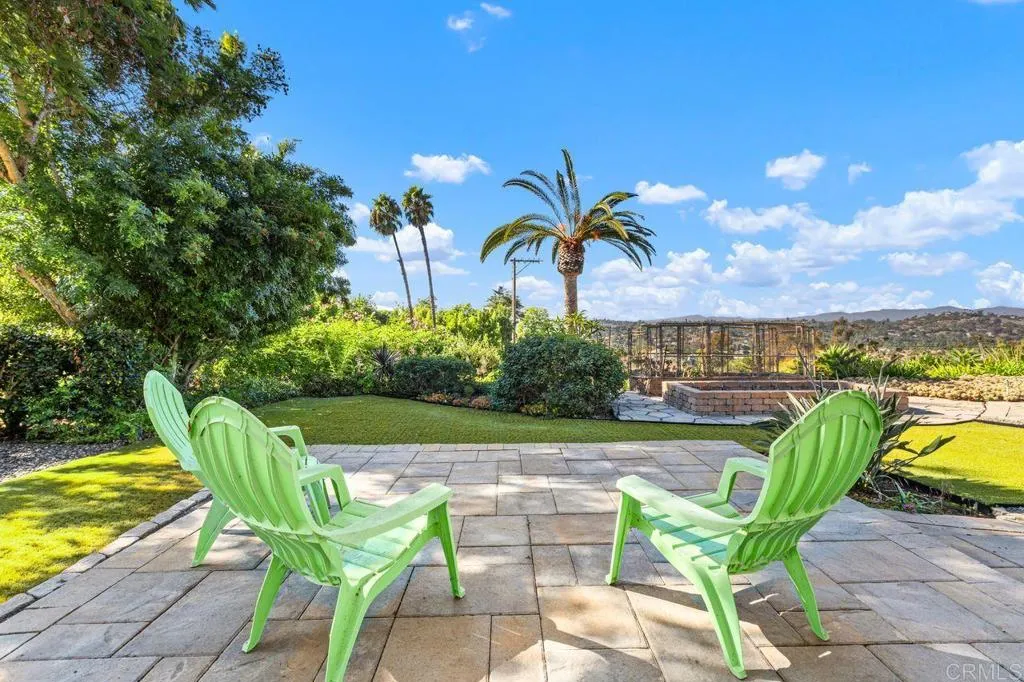 Welcome to this exceptional single-level custom estate, a true sanctuary of comfort, sophistication, and panoramic beauty. Built in 1999 and thoughtfully designed for modern living, this gated ranch-style residence offers approximately 2,525 square feet of living space, 4 bedrooms, 2.5 baths, a finished attic accessed by a spiral staircase that adds both charm and versatility, and peek-a-boo ocean views. Nestled on nearly one acre of beautifully landscaped grounds in the foothills of Vista, this home captures the essence of peaceful Southern California living while remaining conveniently close to local shops, restaurants, and everyday amenities. From the moment you arrive, the curb appeal is undeniable. Mature landscaping frames the property in vibrant color and texture, while the stately facade and inviting entryway set the tone for the refined spaces within. The oversized three-car garage is completely finished, offering high ceilings and abundant room for storage — ideal for car enthusiasts, hobbyists, or those seeking extra workspace. Inside, the home’s open layout is enhanced by vaulted ceilings and filtered dormer windows that bathe the space in natural light. The craftsmanship is evident throughout, with a floor-to-ceiling stone fireplace, quality finishes, tasteful upgrades, and an attention to detail that makes this home truly special. The living areas flow seamlessly, creating an inviting atmosphere for gatherings both large and small. Expansive windows frame sweeping views that stretch toward the horizon, where gentle hills meet ever-changing skies. The open kitchen is an entertainer’s delight and there is a charming breakfast nook that overlooks the garden. Whether you’re hosting a dinner party or enjoying a quiet morning coffee, this space radiates warmth and functionality. The primary suite serves as a tranquil retreat, complete with an elegant en-suite bath, huge closet with custom built-ins and serene backyard views. There are 3 secondary bedrooms, and a pull down ladder in the hallway that leads to additional attic storage space. Step outside and discover your private oasis equipped with a putting green, a variety of fruit trees, plenty of flat useable space for a large ADU, sport court or RV parking, and spectacular westerly views. A beautifully designed patio is ideal for al fresco dining, lounging, or simply savoring the golden glow of sunset. The meticulously maintained landscaping and the subtle blend of hardscape and greenery create a peaceful setting that feels worlds away. On clear days, the lovely Pacific skyline reminds you just how close you are to the coast. This remarkable residence perfectly balances luxury, functionality, and natural beauty. With its single-level design, spectacular vistas, and masterful craftsmanship, it’s more than a home — it’s a beautiful lifestyle. Come experience the best of Southern California living in this timeless custom estate. Dare to Dream… Then make it yours! Buyer/Buyer’s Agent to verify all information in the MLS and marketing materials.