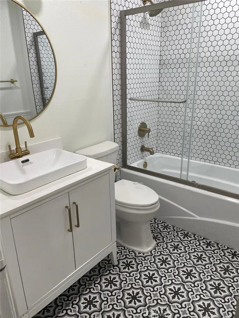 Totally remodeled condo at first floor with a lager Patio for relaxing. Custom designed bathrooms. All remodeled kitchen. Brand new Air conditioning. Custom made solid wood shade throughout the condo. Recessed lighting. Dimming lights throughout the condo. Huge wake-in storage closet. Very large patio for entertaining and relaxing has water hose. End unit is very close to the parking. One carport space and 1 parking spot in the uncovered/gated back lot. HOA dues include Water, trash, sewer, Internet, basic cable and EQ insurance. Complex has 3 Pools, 3 Spas and kids play area.