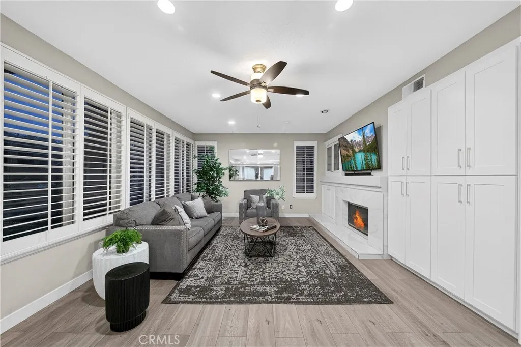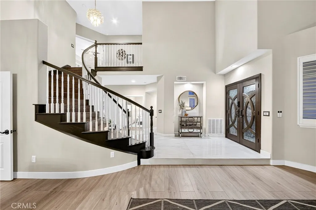 Experience elevated living in this elegantly remodeled residence nestled in one of Chino Hills’ most prestigious neighborhoods. From the moment you enter, soaring high ceilings, refined crown molding, wood flooring, and custom plantation shutters create an atmosphere of timeless sophistication.
