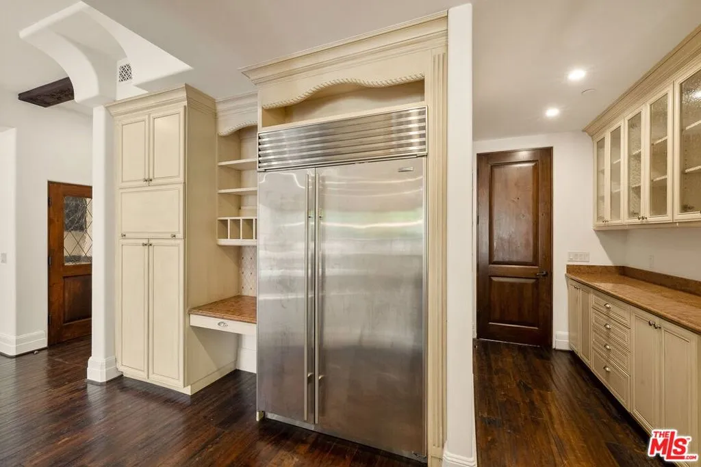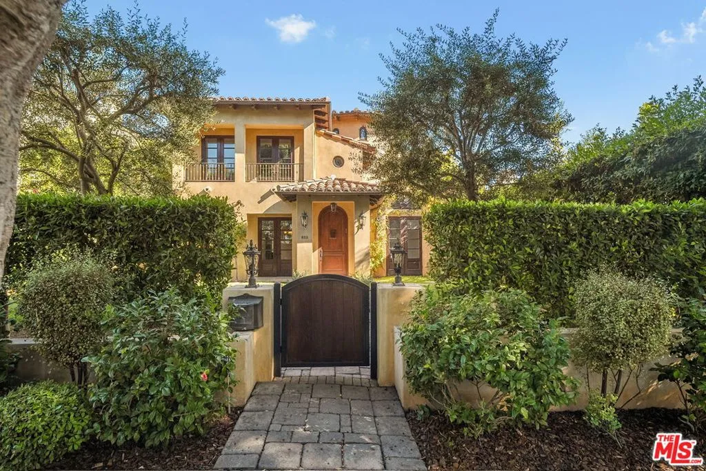 Welcome to this refined Spanish Revival home for lease in Santa Monica, ideally located in the highly desirable College Streets neighborhood, just moments from Montana Avenue’s boutiques, restaurants, and cafes. This luxury 5-bedroom, 6-bathroom home offers 4,177 square feet of elegant living space, blending timeless architectural charm with modern California living. Enter to discover exquisite details including coved ceilings, French doors, graceful archways, a curved staircase, and warm wood floors. Large windows flood the home with natural light, highlighting the inviting layout designed for both everyday comfort and entertaining. The home features a formal living room centered around a stone fireplace, a formal dining room ideal for gatherings, and a dedicated office. The chef’s kitchen is a true centerpiece, complete with natural stone countertops, premium stainless steel appliances like the Viking range with double ovens, a sunlit breakfast nook, and a walk-in pantry. The adjacent family room offers built-in wine storage and opens through double sets of French doors to the backyard, creating seamless indoor-outdoor flow. Upstairs, the primary suite serves as a private retreat with a stone fireplace, covered balcony overlooking the backyard, a custom walk-in closet, and a spa-inspired bathroom featuring dual vanities, a steam shower, and jetted soaking tub. Four additional bedrooms with en suite bathrooms, including one on the main level, provide versatility for a variety of lifestyles. Enjoy the tranquil backyard enveloped by mature privacy hedges and featuring a sparkling pool and spa, expansive patio space for alfresco dining and lounging, a BBQ, and a covered veranda. Additional highlights include a powder room, laundry room, and detached two-car garage with built-in storage. Located near the Brentwood Country Club, Montana Avenue shops, and just minutes to Santa Monica Beach, this exceptional home offers space and style in one of Santa Monica’s most coveted neighborhoods.