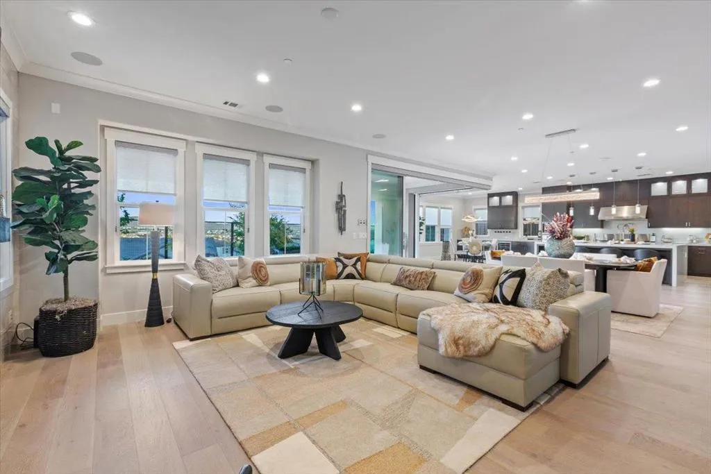 Discover the perfect blend of luxury, innovation, and comfort in this upgraded turnkey home located in Gale Ranch’s coveted Carmela neighborhood. Showcasing panoramic views of Mt. Diablo and access to top-rated schools, this residence redefines modern California living with over $900,000 in designer upgrades. Elegant high ceilings, custom finishes, and a seamless open layout create a sense of timeless sophistication from the moment you step inside. The gourmet chefs kitchen is a statement of artistry and function, featuring Quartzite countertops, Sub-Zero appliances, and a Wolf range, flowing effortlessly into the great room with a sleek linear fireplace and 90-degree panoramic doors that extend to a covered loggia-complete with outdoor kitchen, BBQ, and space heaters ideal for year-round entertaining. A main-level ensuite bedroom offers flexibility for guests, multi-generational living, or a private home office. Upstairs, enjoy a versatile loft with stunning balcony views, three additional ensuite bedrooms, and a primary suite with a retreat and a spa-inspired bath that evokes pure serenity. Advanced smart home automation, CAT-6 networking, 7.1 surround sound, an LG OLED TV, owned solar panels, and a 3-car tandem garage with dual EV chargers complete this extraordinary residence