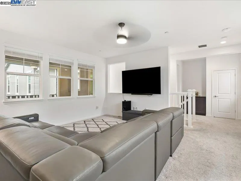 Welcome Home to a beautifully refined, upper-level sanctuary in the coveted River Islands community—where comfort meets quiet elegance. From the moment you enter through the main-level foyer or the attached 2-car garage, a sense of calm sets the tone. Ascend to the second floor and discover a sophisticated open-concept living space bathed in natural light. The gourmet kitchen invites connection and creativity, featuring a generous island with a built-in sink—perfect for intimate conversations over coffee or effortless entertaining. All rooms are thoughtfully placed on one serene level, including a dreamy primary suite designed as your personal retreat. Modern luxuries elevate everyday living: a Tesla EV charger, whole-home water softener, and meticulously maintained community amenities including a sparkling pool, spa, and BBQ area. Surrounded by lakes, parks, and peaceful walking paths, this home offers not just a place to live, but a lifestyle to fall in love with.