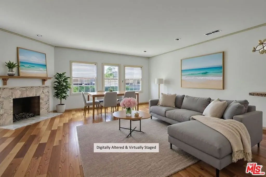 One or more photo(s) has been virtually staged. PRICE IMPROVEMENT. Seller is motivated and ready to move quickly for the right offer. Welcome to this 2-bedroom, 3-bathroom townhouse in a charming 5-unit Spanish-style building on a quiet, tree-lined street in the prestigious college streets of Santa Monica. Currently leased through November 2026 at $3,850/month, this property offers immediate rental income for investors or a future primary residence for buyers planning ahead. Ideally located blocks from top-rated schools and all the boutique shopping, cafes and restaurants that Montana Ave has to offer, not to mention, just a short drive to the beach! This end unit features a desirable layout with hardwood floors throughout. The kitchen opens to a combined dining and living area that flows to a private patio. As an end unit, the property backs directly onto a communal yard, perfect for pet owners seeking outdoor space. The main level includes a powder room and direct access to an enclosed two-car garage with ample storage and secure, gated entry exclusive to residents. Upstairs, the primary suite offers soaring ceilings and an en-suite bathroom with dual vanities, tile finishes, a spacious shower, and a soaking tub. The second bedroom includes its own en-suite bath. An upstairs laundry area adds convenience. Located North of Wilshire in the highly sought-after Franklin Elementary School boundary, just a stroll to Douglas Park, Montana Avenue, and the Brentwood Country Mart. This end-unit townhouse presents a rare opportunity in one of Santa Monica’s most desirable neighborhoods whether as an income-producing investment or future dream home. Tenant-occupied with lease through November 2026. Showings available with 24-hour notice.