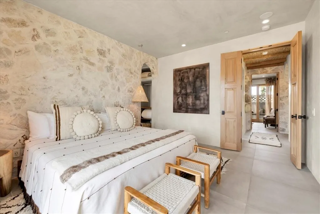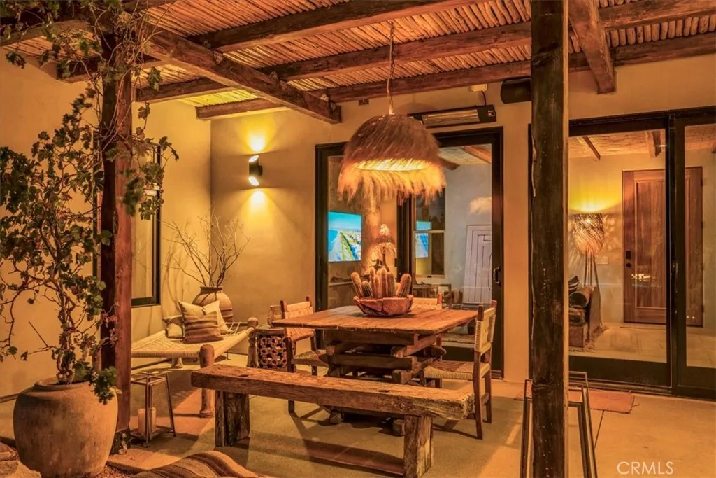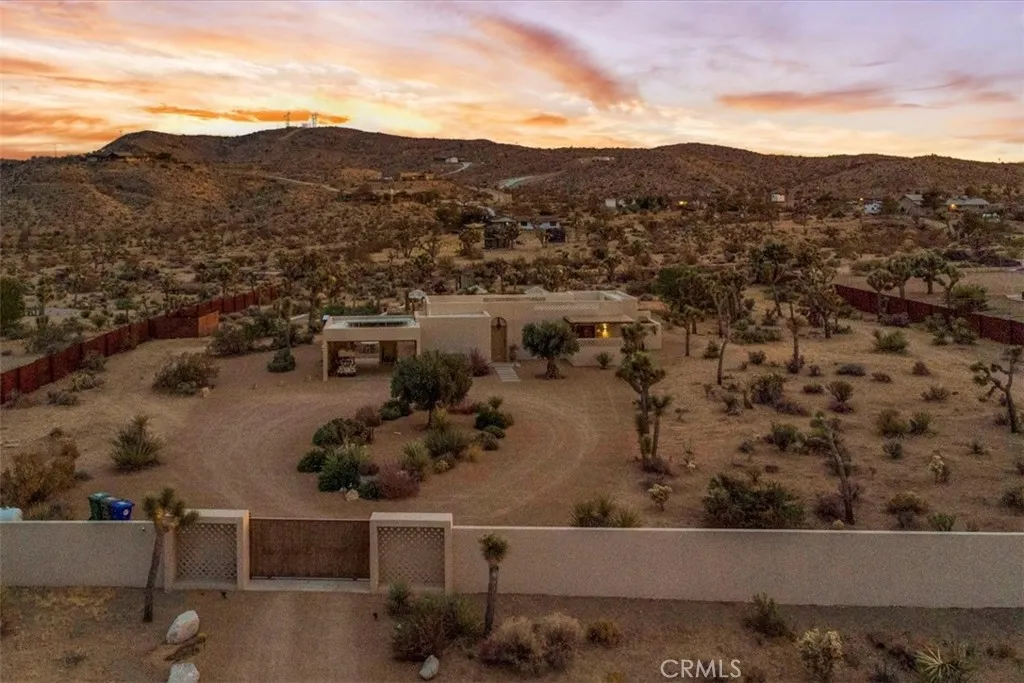 Step into your own private sanctuary in the heart of Yucca Valley—a stunning furnished Moroccan desert-inspired retreat that blends modern luxury with timeless design. This 2-bedroom, 2-bathroom architectural gem spans 1,363 square feet and sits on a serene 2.3-acre lot, offering total privacy and an unmatched desert living experience. From the moment you enter through the electric gate, you’re welcomed into a fully fenced oasis surrounded by native desert landscaping and curated stone walkways. Inside, you’ll find sleek concrete floors, custom stone accents, built-ins, and thoughtfully designed living spaces that open seamlessly to the outdoors. The home features private patios, a tranquil inground heated salt water pool and spa, an outdoor fire pit, and shaded lounging areas—perfect for entertaining or unwinding under the stars. New modern architecture is complemented by mini splits for year-round comfort, while a carport adds function and more outdoor opportunities. This is more than just a home—it’s a destination. Ideal as a luxury vacation getaway, high-end rental, or full-time desert retreat. Don’t miss the chance to own this truly one-of-a-kind property where style, privacy, and natural beauty meet.