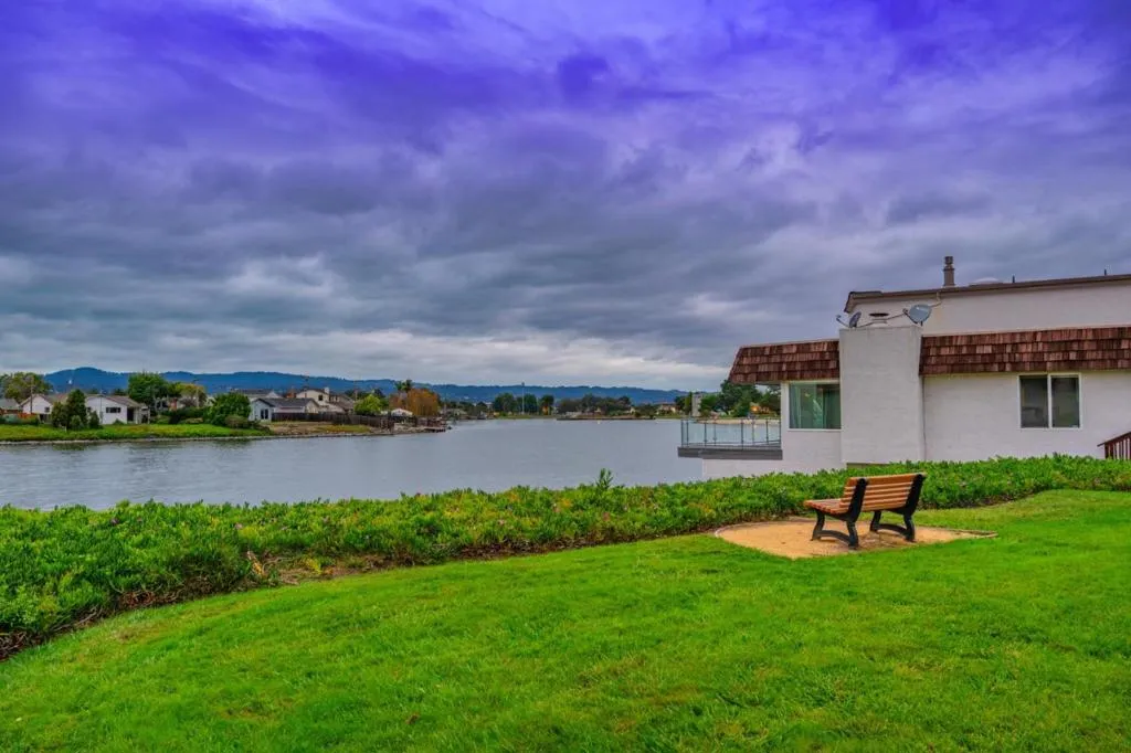 Designed for those who crave ease and elegance, this remodeled first-floor 1-bed, 1-bath condo offers a refined yet welcoming place to call home and just steps from the water. The beautifully remodeled kitchen, highlighted by striking blue cabinetry, bar seating, and high-end appliances, brings character to everyday living. Custom built-ins create a polished, streamlined space, while light-filtering shades offer privacy and soften natural light for a warm, inviting feel. In-unit washer/dryer adds to the convenience. Right outside your door, unwind along the lagoon, settle onto a quiet bench, and enjoy wide water views – a simple pleasure that becomes part of daily life. Stroll the waterfront paths, take in peaceful sunset moments, and embrace resort-style amenities, all while being close to major employers, 10 minutes SFO airport, and easy freeway access for smooth commuting. Community amenities: 2 pools, jacuzzi, tennis/pickleball courts, picnic areas, clubhouse, hiking trails, and boat storage. 1 assigned parking and storage closet. The location enhances it all – 5 min to Mariners Point Golf Center on the SF Bay, Across from Gilead campus + close other employers, 10 min to SFO, 5 min to Hwy 92, This condo offers a lifestyle that is both convenient and wonderfully comfortable.