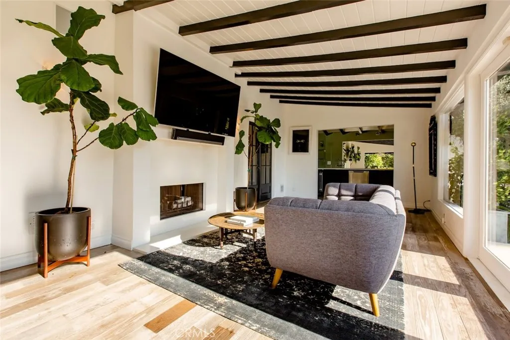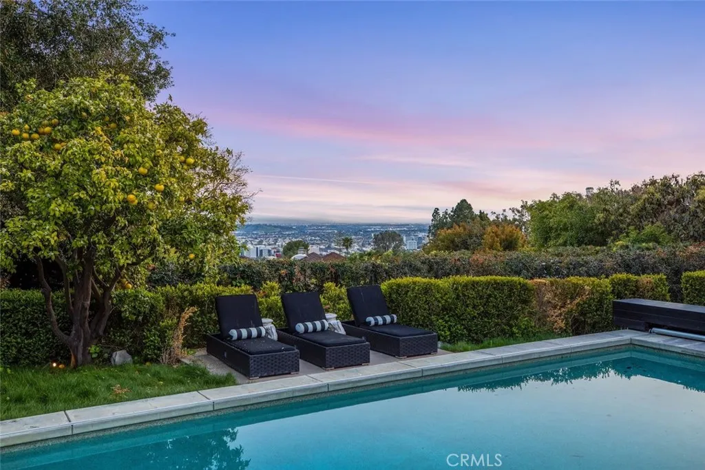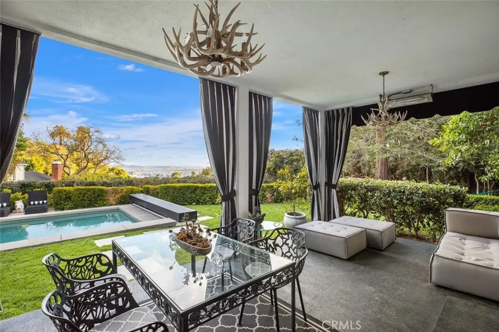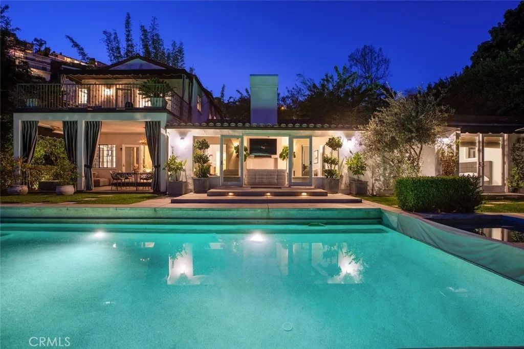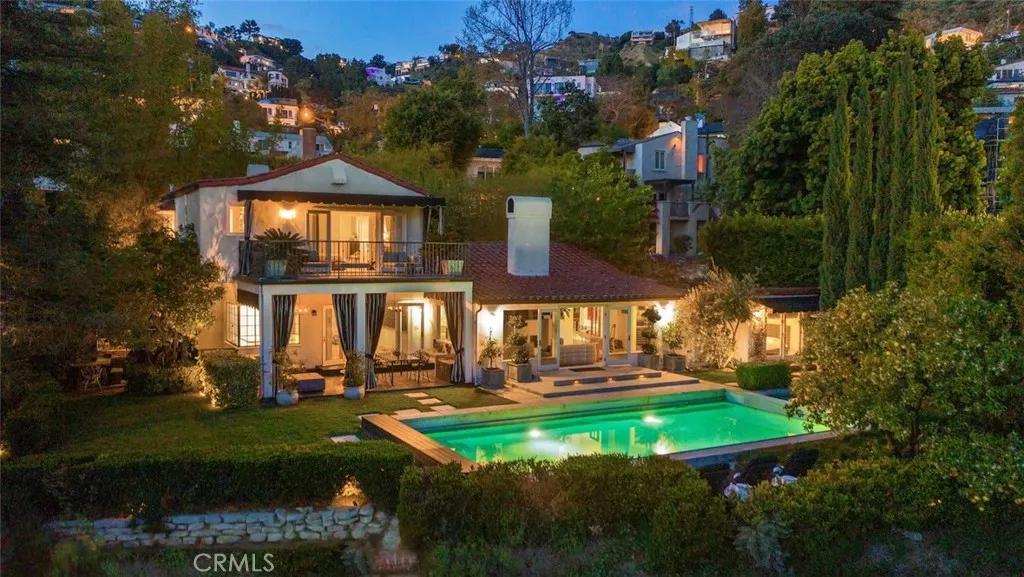 Will consider short term rental, minimum one month. Off Sunset Plaza down a semi private lane, discreetly walled and gated overlooking city lights, this stunning furnished three-bedroom, three-bathroom, plus 1 bed and bath guest cottage, classic 1920s Spanish home is perfectly blended with modern finishes. The living area boasts incredible volume, a dual-sided fireplace, and doors to the enclosed veranda, blending indoor and outdoor spaces and creating the ideal space for entertaining. The formal dining room opens to a covered patio and lava stone floors. Pro-style kitchen, elegant Valcucine cabinets with seamless built-in refrigerator and breakfast area. The primary suite opens to a private balcony overlooking the city below. The second and third bedrooms feature ensuite updated baths. Step outside to tranquil gardens, grassy yard, resort-style pool, spa, outdoor shower, and separate guest residence with a bathroom. This home is available furnished & Turn-Key with high end designer furniture and art. Price listed is for a furnished rental