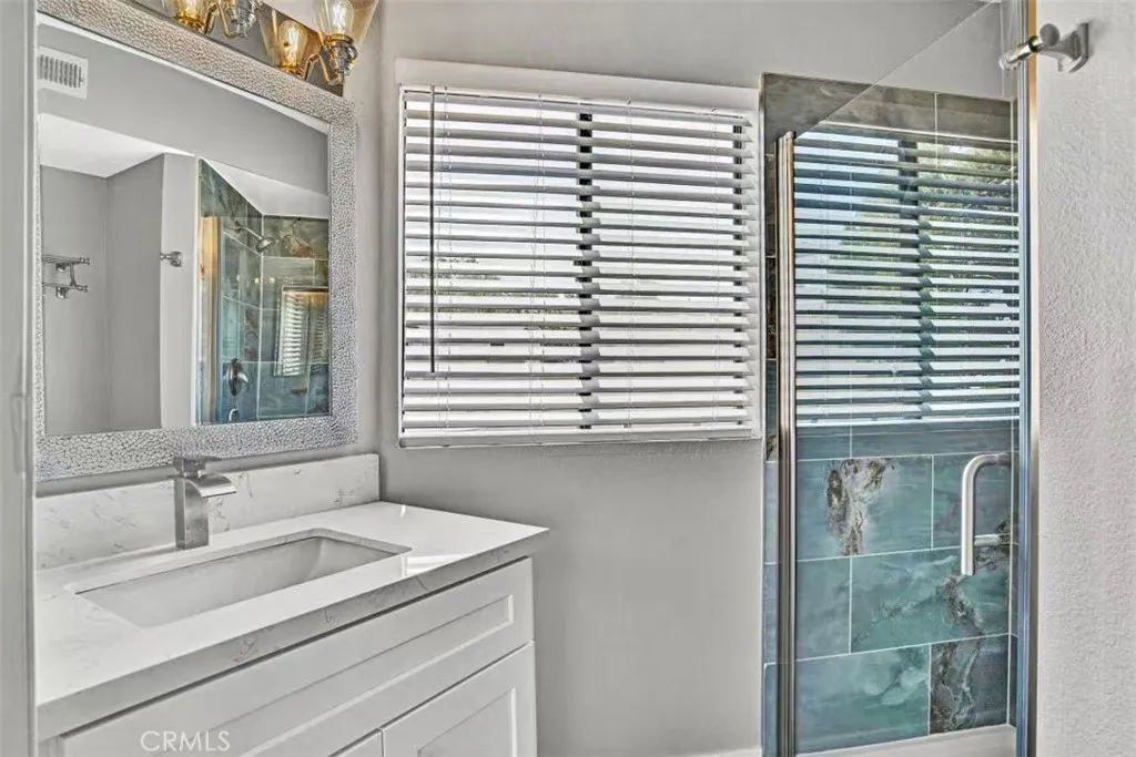 The first floor also includes a convenient half bathroom and a dedicated laundry room. Upstairs, you’ll find two generously sized ensuite bedrooms. The primary suite features updated sinks and a beautifully renovated bathtub, while the second suite offers an upgraded walk-in shower. Both suites enjoy sweeping views overlooking the Chino/Pomona Valley, giving you a peaceful retreat at the end of the day.