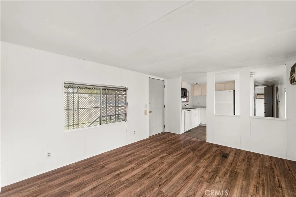 Affordable turnkey home in in the quiet Juniper Senior Park! This two bedroom home is as comfortable as they come, with recently updated kitchen and bathroom. Enter in through a enclosed patio, great for your potted plants and morning coffee lounging. A spacious living room includes a wall mounted swamp cooler which keeps the home nice and cool during those summer months. A pass through takes you to the recently updated kitchen complete with newer sink and dishwasher. Down the hall sits the recently updated bathroom with accessibility features such as a walk in shower and sink with hand holds. Indoor laundry is offered within the bathroom with laundry hookups adjacent to the shower and additional storage above for all your laundry needs. Lots of privacy in each bedroom, as they sit at opposite ends of the home. The primary bedroom enjoys it’s own wall mounted AC unit for added nighttime comfort. Windows throughout the home have been recently replaced, home has also been earthquake braced and sewer line has been replaced. This corner lot space enjoys a larger yard space then it’s neighboring homes. A large gated lawn space is great for a pet (check with the park for breed restrictions). Excellent location, a walkable distance to Stater Bros Market and local dining and shopping.