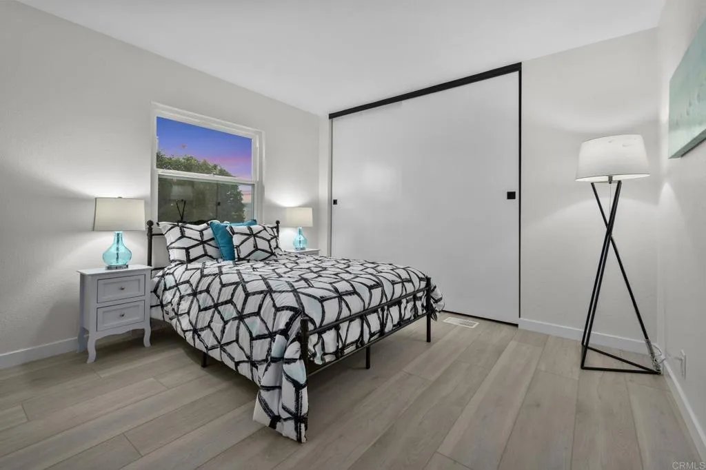 Beautifully Revitalized, Light & Bright 2-Bed/2-Bath Home in 55+ Gated Community — YOU OWN THE LAND! Welcome to this fresh and modern 1,400 sq. ft. home nestled in a desirable 55+ gated community, just 8 miles from the beautiful Carlsbad beaches. Enjoy cool coastal breezes, a low HOA of only $199/month, and the rare benefit of owning the land. Step inside to discover an airy open-concept floor-plan with vaulted ceilings, designed for seamless indoor/outdoor living on an oversized lot. The spacious living and dining areas offer the perfect setting for both everyday comfort and entertaining. The revitalized kitchen features granite countertops, freshly painted cabinetry, and all-new stainless steel appliances, including a double-door refrigerator, 5-burner gas stove, and dishwasher. Start your mornings in the charming breakfast nook with a bay window or at the convenient kitchen bar. The beautiful primary suite offers a walk-in closet with mirrored doors and a private patio entrance. The adjacent updated primary bath includes a soaking tub, separate shower, and abundant storage. The second bedroom is bright, inviting, and perfect for guests or hobbies. Additional Upgrades & Features: • Freshly painted inside and out • All-new wide plank LVP flooring • New modern lighting throughout • Custom front door with contemporary handle set • Dual-pane windows with locks • Updated exterior lighting • Two large covered patios offering privacy, quiet enjoyment, and ideal spaces for relaxing or entertaining • Peace of mind with nighttime security • Active community lifestyle with dinners, parties & games Residents also enjoy resort-style amenities, including a sparkling pool, relaxing spa, and a remodeled clubhouse perfect for gatherings and events. Conveniently located near shopping, restaurants, and major freeways—with Kaiser Hospital just 10 minutes away and Palomar Hospital only 16 minutes. Easy access to Hwy 78 completes the package—this home truly has it all!