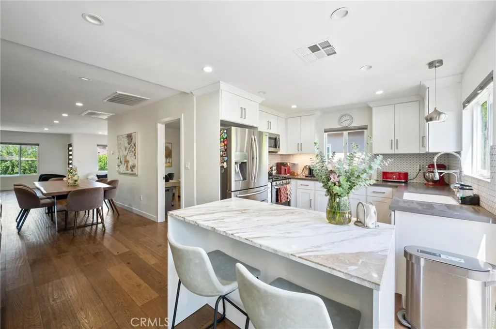 Welcome to this stunning home in the heart of Encino! Where contemporary design meets everyday functionality. This beautifully crafted residence offers a perfect blend of style, comfort, and convenience — ideal for buyers seeking a turnkey property with high-end finishes and generous outdoor space. Step into an open floor plan flooded with natural light, featuring gorgeous hardwood floors, high ceilings, and recessed lighting throughout. The modern kitchen is a chef’s dream, equipped with stainless steel appliances, sleek cabinetry, and direct access to the large backyard — an entertainer’s paradise perfect for weekend barbecues, outdoor dining, or simply relaxing in your own private oasis. The bathroom’s boast custom tile flooring in the bathrooms, with elegant shower-in-tub combinations for a spa-like experience. Convenient in-kitchen laundry adds ease to your daily routine, while the well-sized bedrooms provide comfort and space to unwind. Every detail of this home has been thoughtfully designed, making it the perfect blend of functionality and luxury. Located just minutes from Ventura Blvd, you’ll enjoy easy access to shopping, dining, parks, and major freeways — all while living in a peaceful residential pocket of Encino. Whether you’re a first-time buyer, a growing family, or simply looking for a modern space with plenty of room to entertain, this is a rare opportunity you don’t want to miss. Schedule your private tour today and experience the best of Encino living!