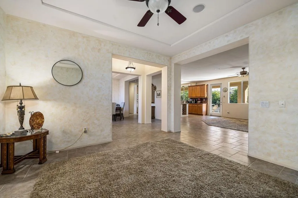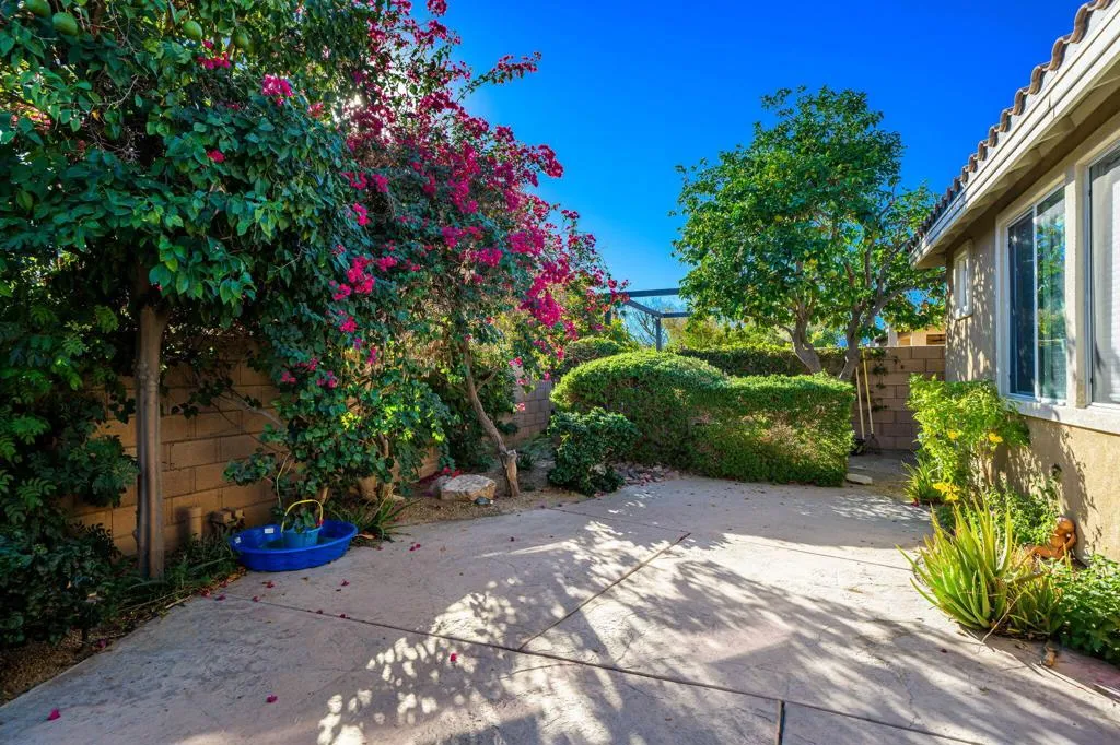 DON’T MISS THIS…Welcome to the lovely community of Shadow Ranch. This beautiful single-family home offers 2,913 square feet of living space. Boasting five spacious bedrooms including a private separate casita within the courtyard makes it ideal for those who love to entertain or simply enjoy ample living space. This cozy home features plantation shutters, plush carpet and easy-care ceramic floors- perfect for comfortable everyday living.Enjoy an expansive entertainers kitchen, complete with granite countertops, a functional center island, and ample storage. The formal dining room is perfect for entertaining.The primary ensuite is a true retreat, featuring a separate shower, tub, and double sinks, complemented by a spacious walk-in closet. Enjoy Southern exposure views from your private covered patio, overlooking the sparkling pool and spa–perfect for relaxing on sunny days. Additional amenities include a media/recreation room, powder room, coffered ceilings, crown molding and a secure gated entry.For golf lovers, the Lights of Indio Public Golf Course and Clubhouse are conveniently located just minutes away. Hit the hiking trails for a bit of fun and fitness..This partially furnished home is ready to welcome you. Don’t miss the opportunity to make it yours. Call today for your private showing