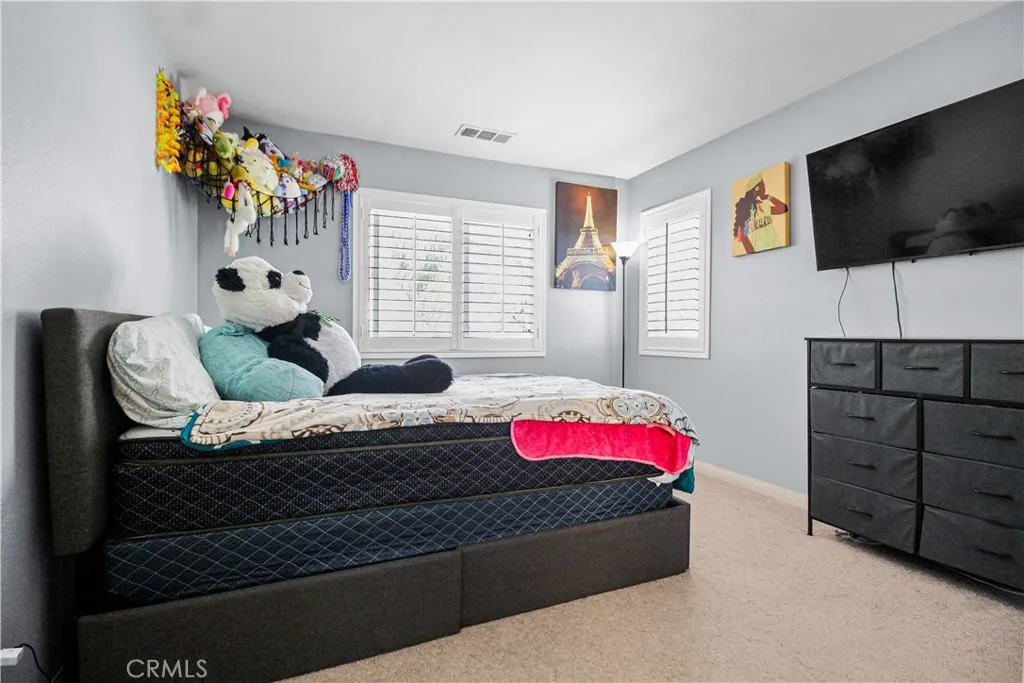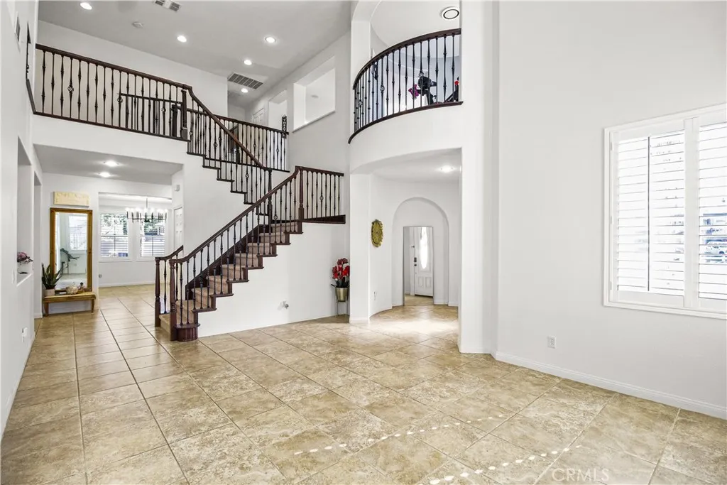 Welcome to your premier luxury home in Beaumont’s most sought-after gated community, privately set at the end of a peninsula street near the PGA golf course and walking distance to Tournament Elementary. The community offers 24-hour patrol, private fishing lakes, and fast access to the I-10 and 60 freeways, placing you just 40 minutes from Palm Springs, 10 minutes from Morongo Casino, and about 70 miles from Los Angeles. This location delivers security, prestige, and effortless convenience with a true resort-style atmosphere. A grand foyer with vaulted ceilings and a dramatic staircase introduces a refined interior designed for both elegance and everyday comfort. The first floor features full tile flooring and a flowing layout with a separate dining room, a separate living room, and a spacious family space that connects to a chef-inspired kitchen with granite counters, full tile backsplash, a large island seating six to eight, a gold farmhouse sink, stainless steel appliances, and custom roll-out shelving. A main-level guest bedroom and full bath with direct pool access make multigenerational living or hosting overnight visitors seamless. Upstairs offers laminate and carpet flooring, an open loft overlooking the main living space, and a dedicated theatre room with high-end audio-visual setup for a true cinematic experience. The primary suite serves as a private retreat with a spa-style bathroom featuring a free-standing soaking tub, LED mirror and lighting, and a custom walk-in closet with built-ins. Two additional bedrooms, a full bath, and an upstairs laundry room with sink add comfort and functionality. The backyard, showcased on HGTV’s Pool Kings, delivers a private resort experience surrounded by mature palms. A PebbleTec heated pool and spa with Aqualink smart control is paired with a built-in outdoor kitchen with grill, island, mini-fridge, and TV. The covered patio includes ceiling fans and custom lighting, while uplighting throughout the yard enhances evening ambience. Two outdoor storage sheds discreetly boost utility without compromising style. An oversized three-car garage features epoxy floors, custom cabinets, hanging racks, a workspace, and a Tesla charger. Additional upgrades include custom shutters, fresh interior paint, a Google Home camera system, and impeccable maintenance throughout. With luxury finishes, smart technology, true indoor-outdoor living, and a layout that supports entertaining and multigenerational needs.