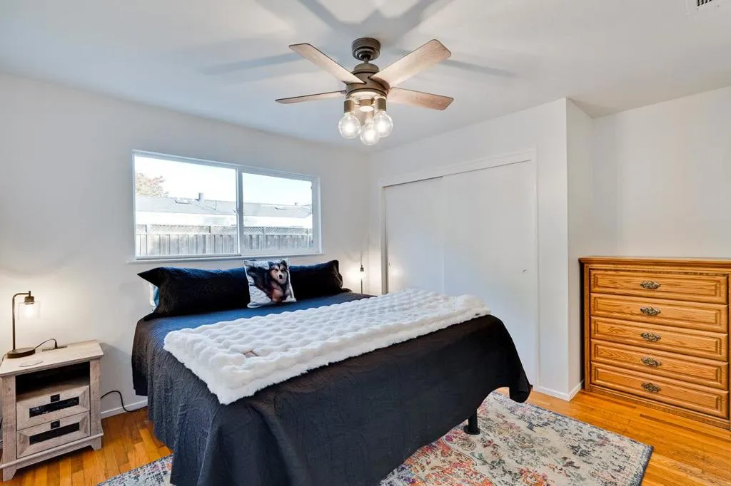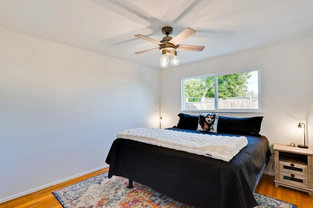 Welcome to this Blossom Valley home featuring 1,195 square feet of comfortable living space. It comes with a charming white picket fence that makes it even more inviting. The remodeled kitchen will impress with its granite countertops, beautiful cabinets and stainless steal appliances recessed lighting, making it ideal for culinary enthusiasts. This home offers three bedrooms and two full bathrooms, with the warmth of hardwood floors. The comfortable and inviting living room includes recessed lighting, cozy fireplace complemented by forced air heating ensuring year-round comfort. For those hot summer days enjoy cooling with central A/C and 5 ceiling fans. Additional amenities include a tankless water heater, washer and dryer, refrigerator, and SOLAR!. With a two car garage and a large driveway it provides ample parking, Situated on a spacious lot of approximately 6,600 square feet. Only one block from shopping and restaurants. Close to HWY 85 and 87 and minutes to Kaiser Hospital, Hwy 101, 680, and 280, Oak Ridge Mall, Costco, and more shopping! Make it your home today!
