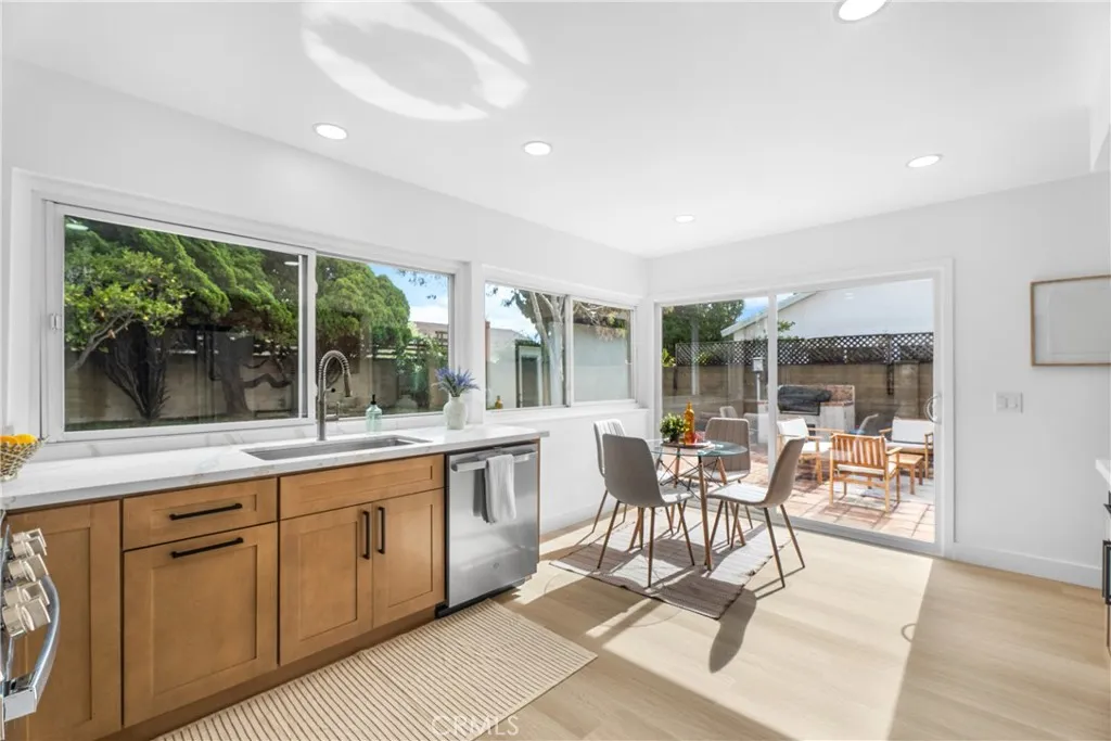 Walk to the beach! *Exquisite contemporary beach home with 2 MAIN floor bedrooms* TWO primary suites* Huge primary suite with a walk-in closet. You will fall in love! This exquisitely renovated coastal property offers a perfect blend of modern sophistication and timeless charm. Every detail has been meticulously crafted, boasting a top-to-bottom renovation that ensures luxury and comfort at every turn. The heart of the home is the stunning chef’s kitchen, featuring sleek quartz counters, contemporary cabinetry, New sink, New fixtures, & New recessed lighting, & New stainless appliances. New wide plank waterproof laminate floors, double pane windows & sliders. New outlets, New baseboards, New paint inside & out. Scraped ceilings. All beds have mirrored closet doors. Stunning baths with New custom tile floors, walls, showers, rain shower heads, lighting, mirrors, & vanities. Custom living room fireplace built for those cozy nights after a long day of work! Large driveway that can fit up to 5 cars and 2-car attached garage. New mirrored closet doors in all bedrooms. It is the perfect spot for hosting family and friends! Both baths have been transformed into serene sanctuaries, showcasing designer finishes and elegant touches. Entertainment and relaxation await outdoors in the expansive private backyard, offering ample space for parties, entertaining, dining, gardening, or simply unwinding from your day. The front yard is equally inviting, adding to the home’s charming curb appeal. Enjoy the cool ocean breezes and glowing sunsets year round in this quiet, highly sought-after coastal neighborhood just 2 miles from the ocean. Close to distinguished schools, Trader Joe’s, Sprouts, Amazon Fresh, Bella Terra, scenic wetlands, trails, parks, Huntington Harbour, Meadowlark Golf Course, and of course, the stunning beaches of Surf City USA..