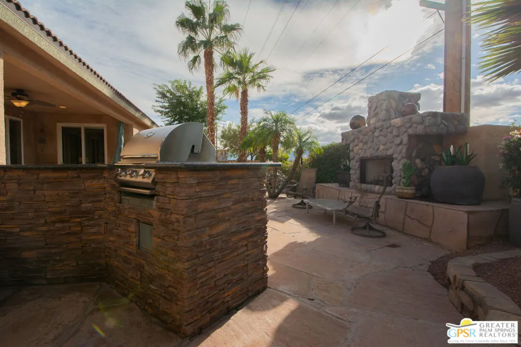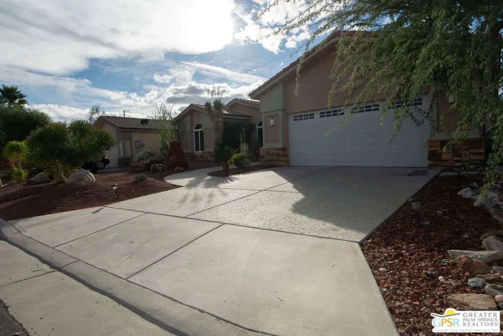 Welcome to 8567 Summit Pass, perfectly positioned on a premium elevated lot within the highly sought-after 55+ gated community of Paradise Springs. This former model home features 2 bedrooms plus a spacious office/den that offers an easy conversion to a true third bedroom, along with 3 baths across 2,338 sq. ft. of bright, inviting living space. The open-concept layout showcases high ceilings, a cozy fireplace flanked by custom built-ins, and a thoughtfully designed kitchen complete with solid-surface countertops, decorative tile accents, and a welcoming breakfast bar. A reverse osmosis water filtration system provides clean, filtered water throughout the home. Indoor living flows seamlessly into the private backyard retreat, where you’ll find flagstone hardscaping, a covered patio, and a built-in BBQ ideal for both entertaining and quiet evenings under the desert sky. Enjoy stunning west-facing views of city lights and Mt. San Jacinto, creating a picturesque backdrop year-round. The primary suite opens directly to the backyard and offers a spacious bath and generous walk-in closet, delivering comfort and convenience. Paradise Springs elevates desert living with resort-style amenities, including a clubhouse, fitness center, pool and spas, BBQ/picnic areas, and secure gated access. Residents also benefit from being adjacent to Mission Lakes Country Club, featuring an acclaimed 18-hole championship golf course. With low HOA dues of just $148 per month, this home offers an exceptional blend of comfort, quality, and lifestyle. Schedule your private showing today – opportunities like this are rare.