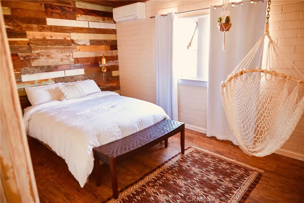 Well-loved, charming 1953 former horse ranch nestled on the north side of Joshua Tree. This mid-century brick cabin, equipped with 1950’s vintage stove top and oven, has straight-shot, gorgeous views of Joshua Tree National Park, with a charming cactus garden all within 5 minutes from the center of Joshua Tree. Enjoy soaking in the hot tub with a mountain view. Very convenient central location, yet far enough of a distance to enjoy peace and quiet away from the highway. Tons of amenities included – Furnished, hot tub, landscape maintenance, water and trash included.